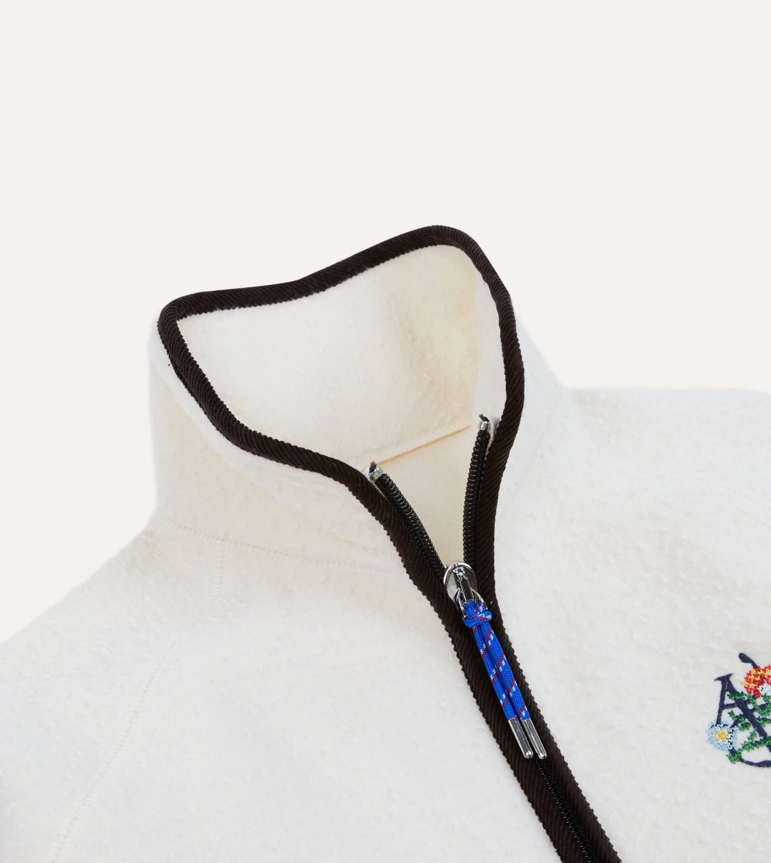 Combining sporty casualwear with a fabric that nods to tailored clothing, this zip fleece is crafted from a textured Casentino wool. Finished with an embroidered motif, it creates an air of carefree, lighthearted style.
