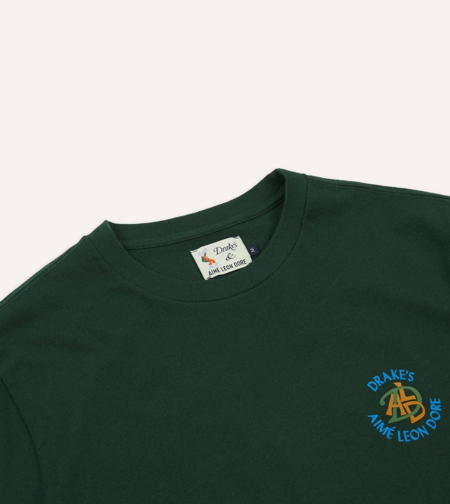 Cut in a classic shape using a substantial cotton jersey, this staple t-shirt features the ALD / Drake’s Blues motif printed on the chest and back, alongside understated details reminiscent of mid-Century sporting apparel.