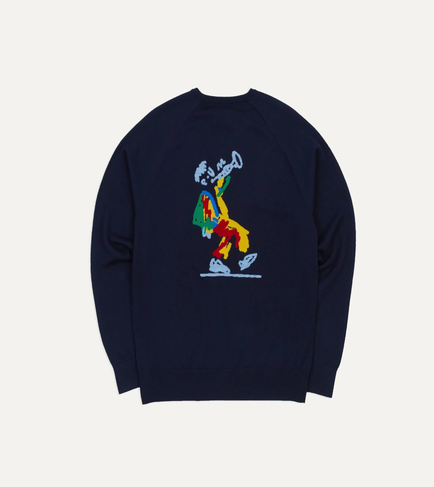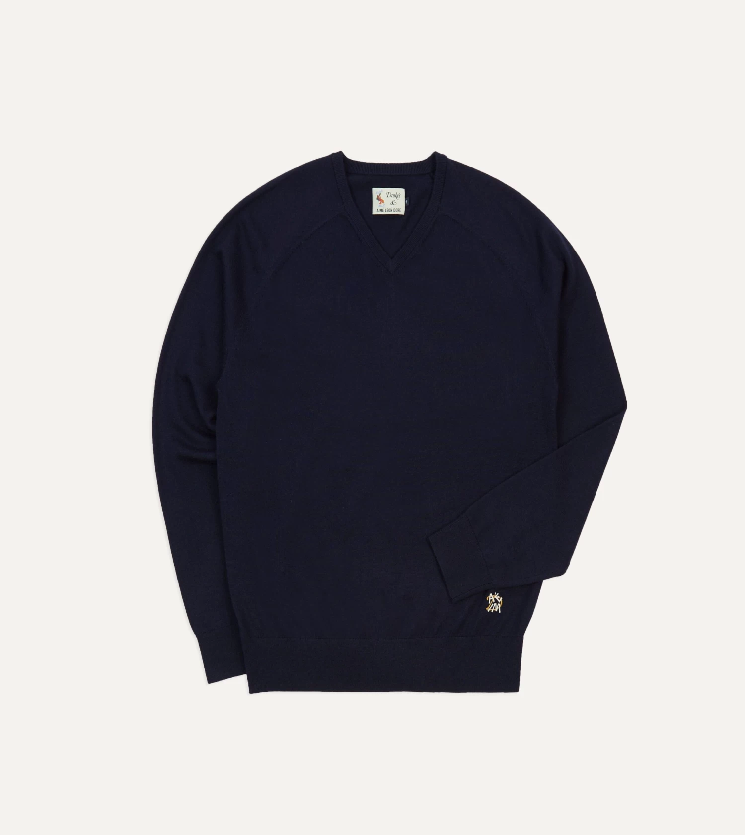 Featuring the ALD / Drake’s Blues motif, knitted in the intarsia method, wherein the different colour yarns are inlaid in each other, fitting together like a jigsaw, a process usually reserved for Argyle knits.