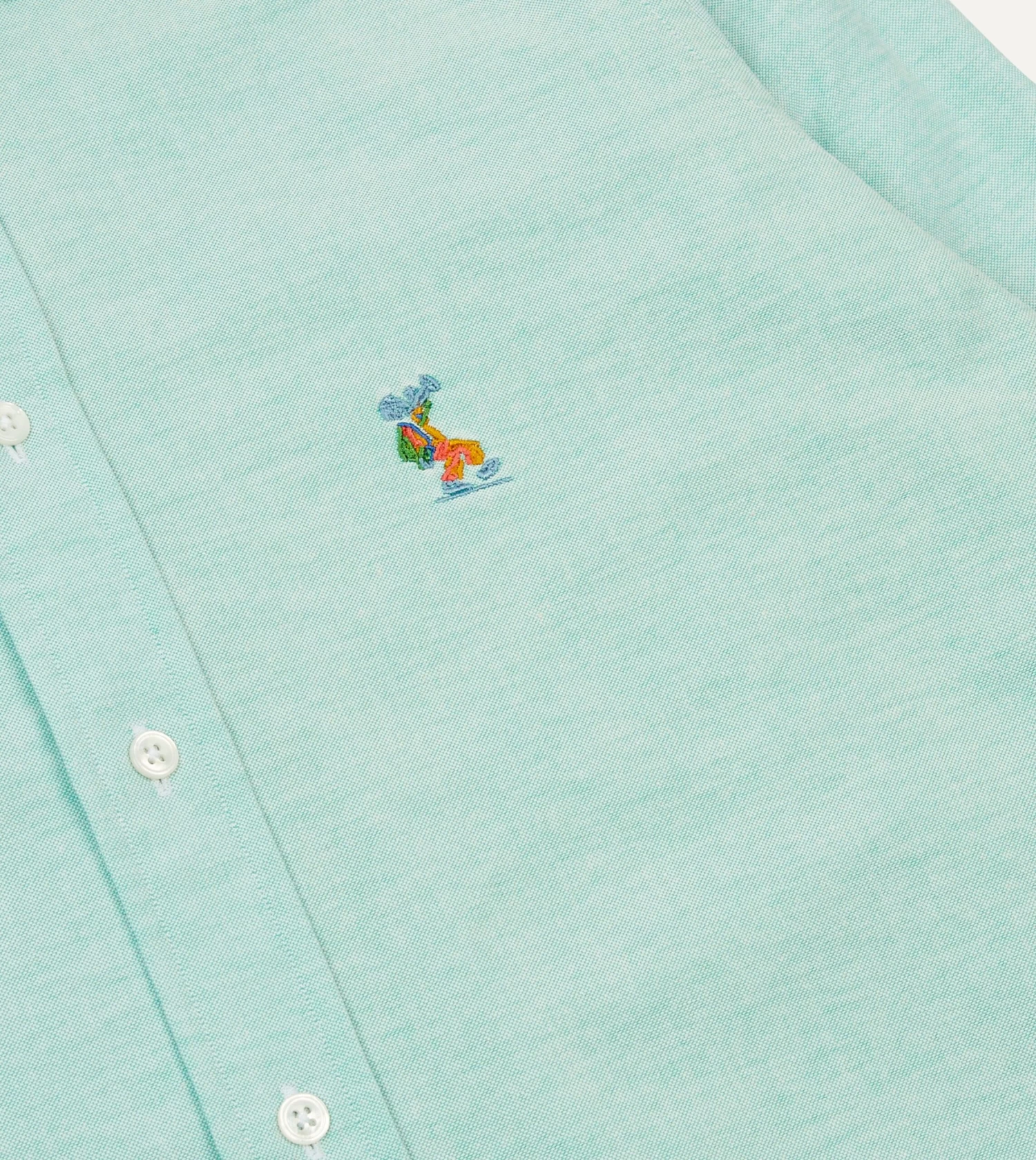 Crafted from a cotton oxford cloth, with a regular silhouette, floating interlinings, single-needle construction, and – perhaps most importantly – an elegant rolling collar, it’s an essential piece of staple shirting, and features an embroidered motif.