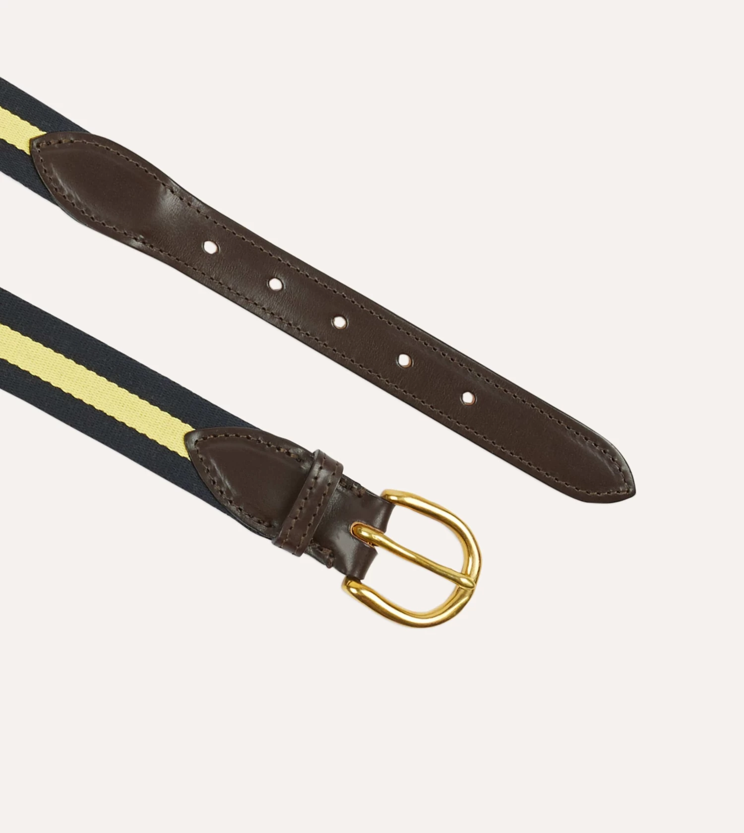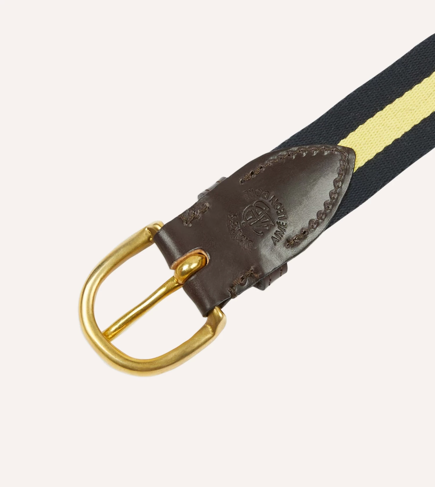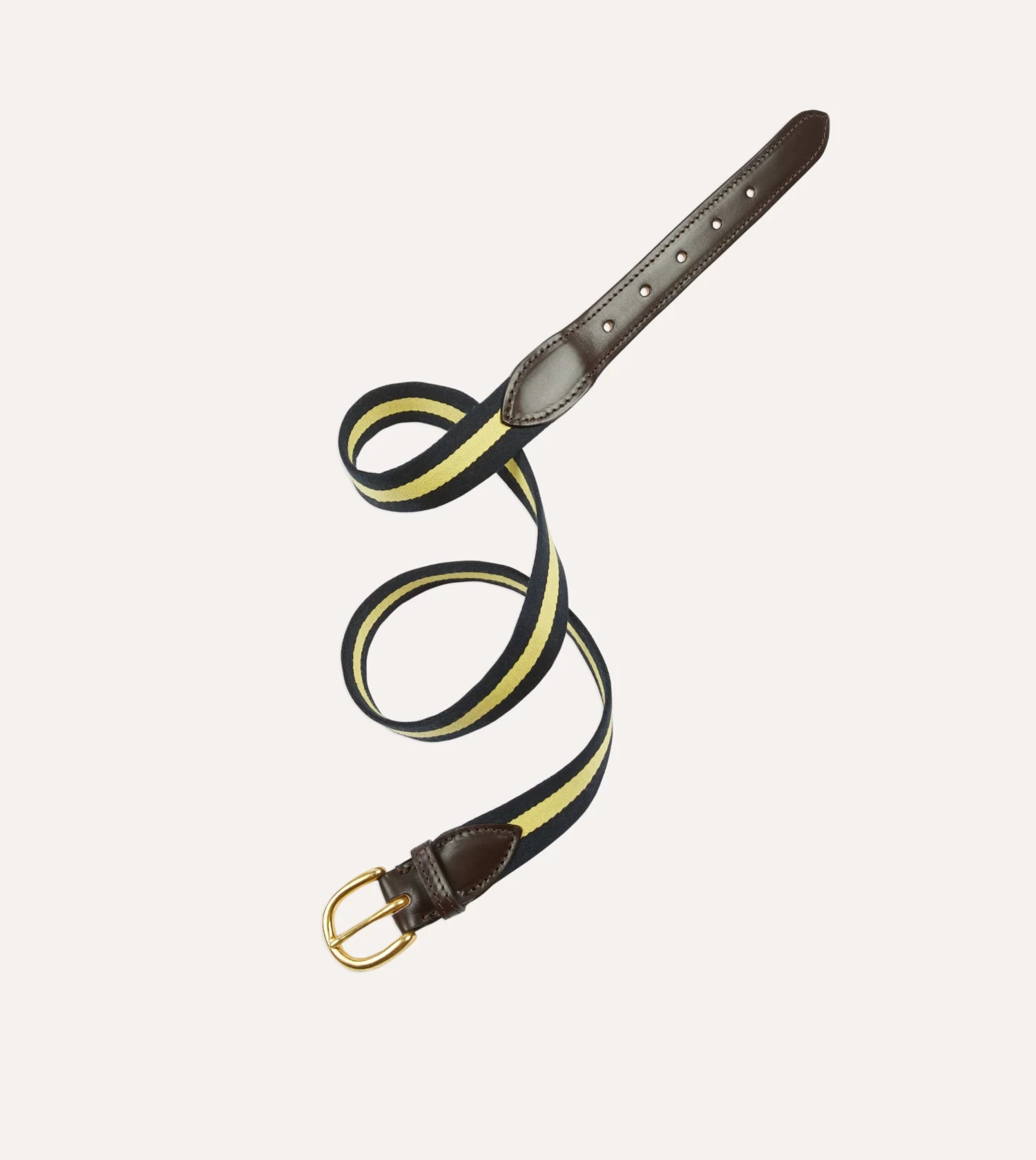 Crafted in England from cotton-poly webbing with bridle leather accents and a solid brass buckle, this belt will keep your strides up in classic fashion.