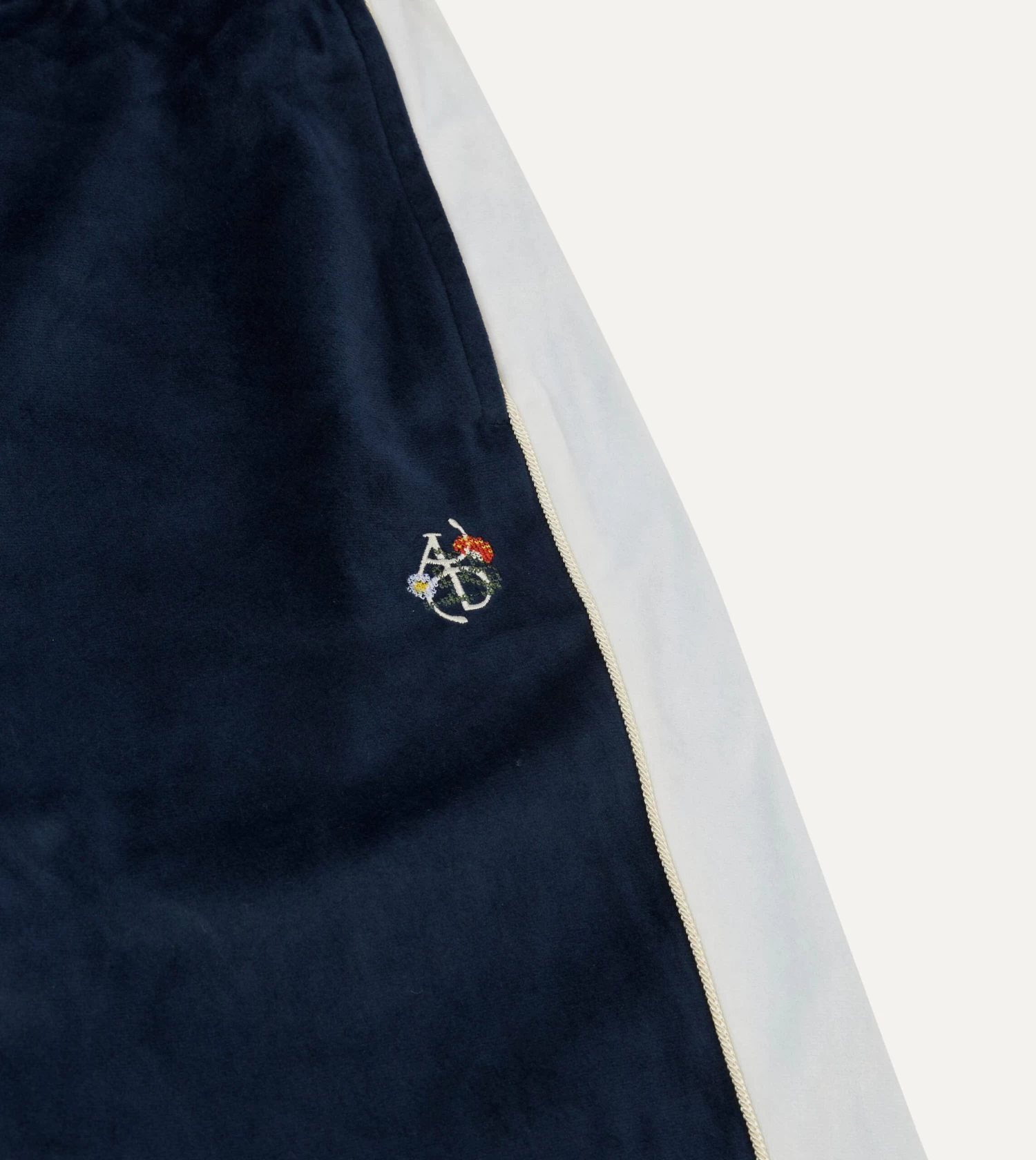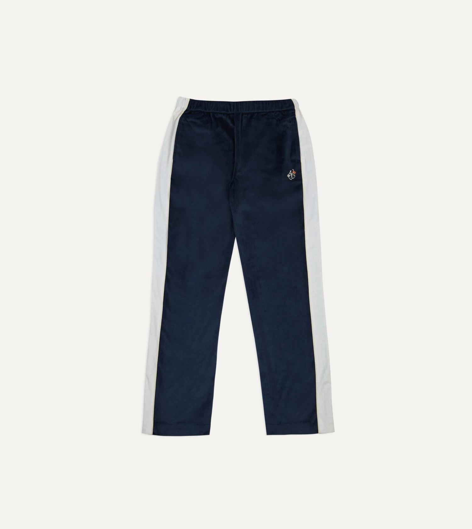 Styled after mid-century athletic gear, featuring twill weave piping, embroidered artwork and on seam pockets, these jogging bottoms are authentic 20th century Americana, reimagined for the British sartorial climate.