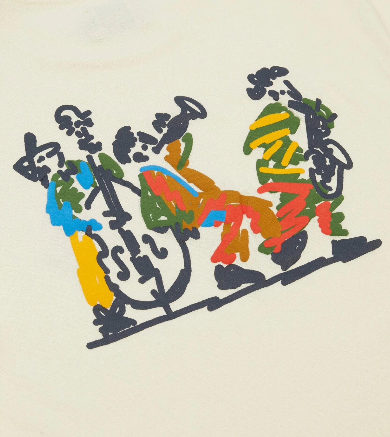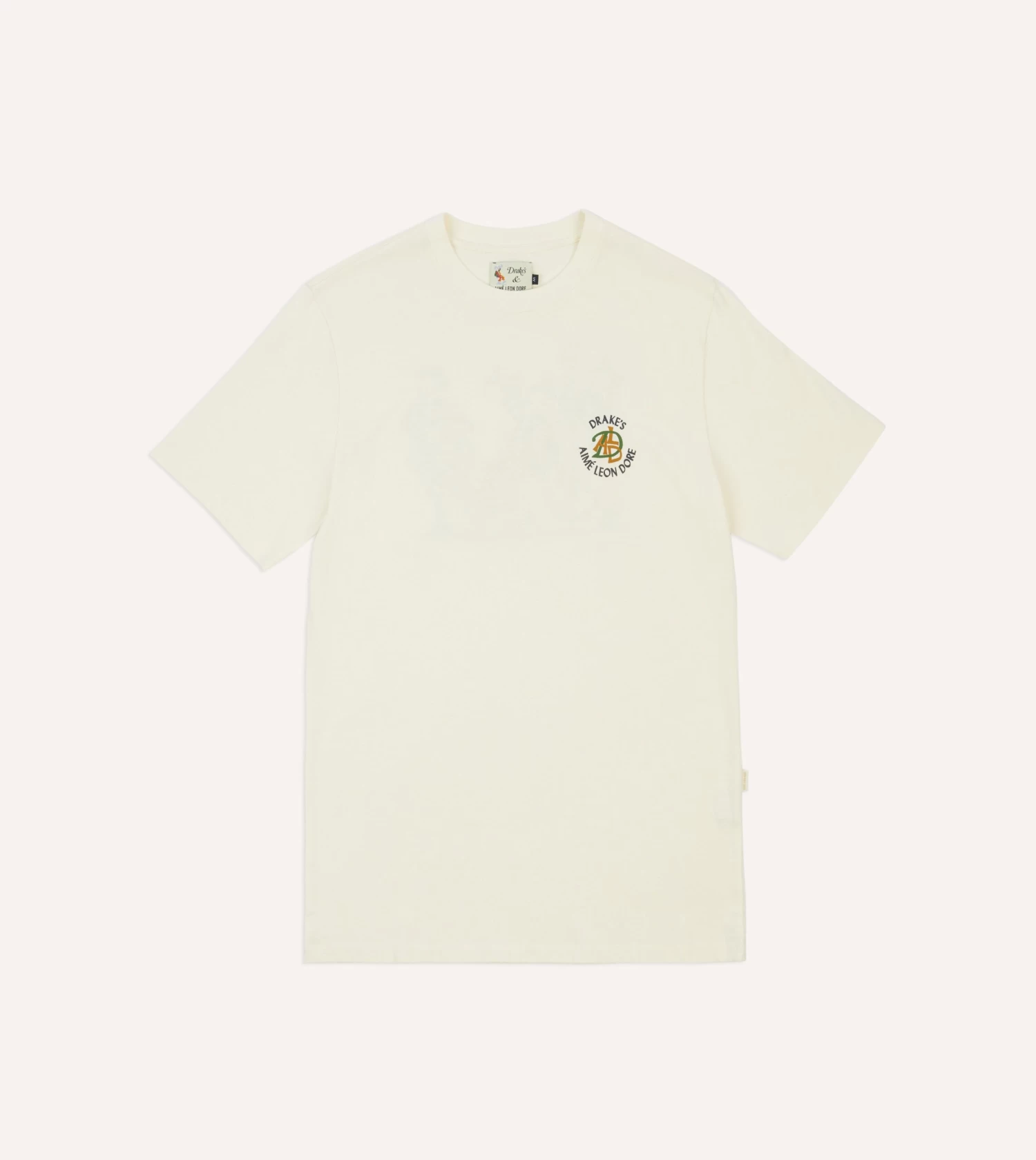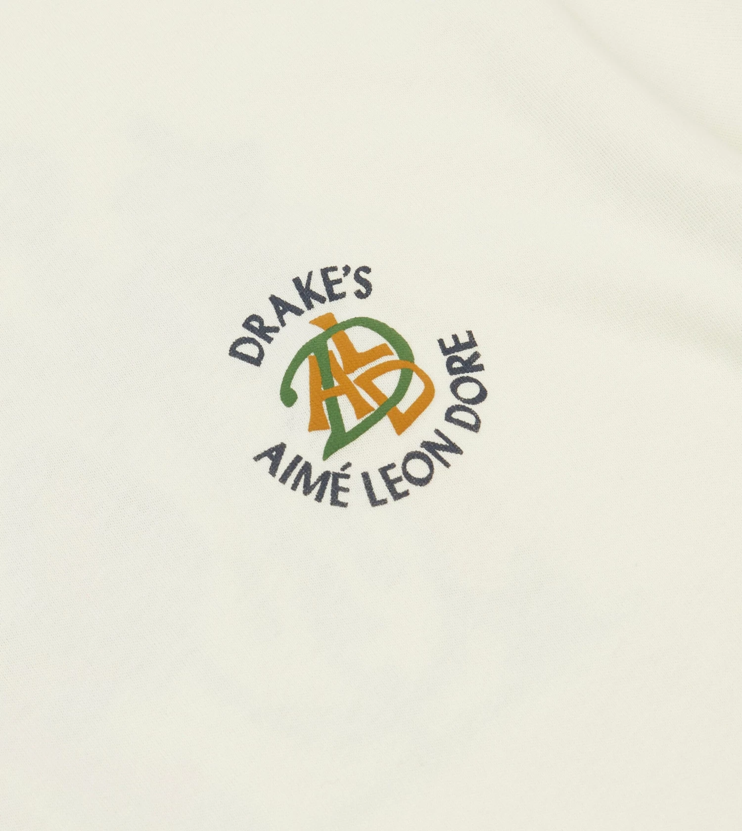Cut in a classic shape using a substantial cotton jersey, this staple t-shirt features the ALD / Drake’s Blues motif printed on the chest and back, alongside understated details reminiscent of mid-Century sporting apparel.