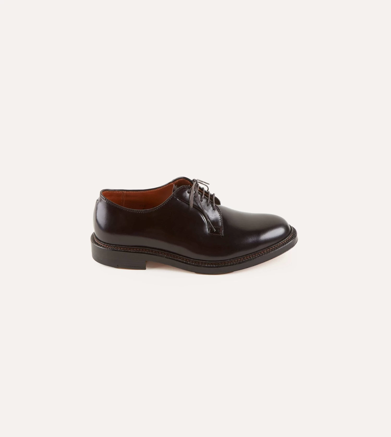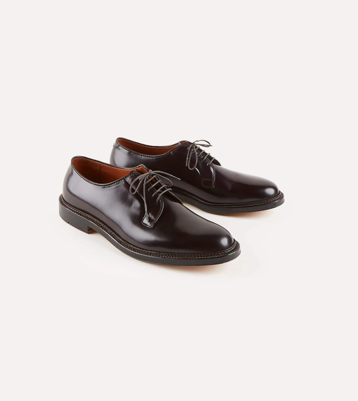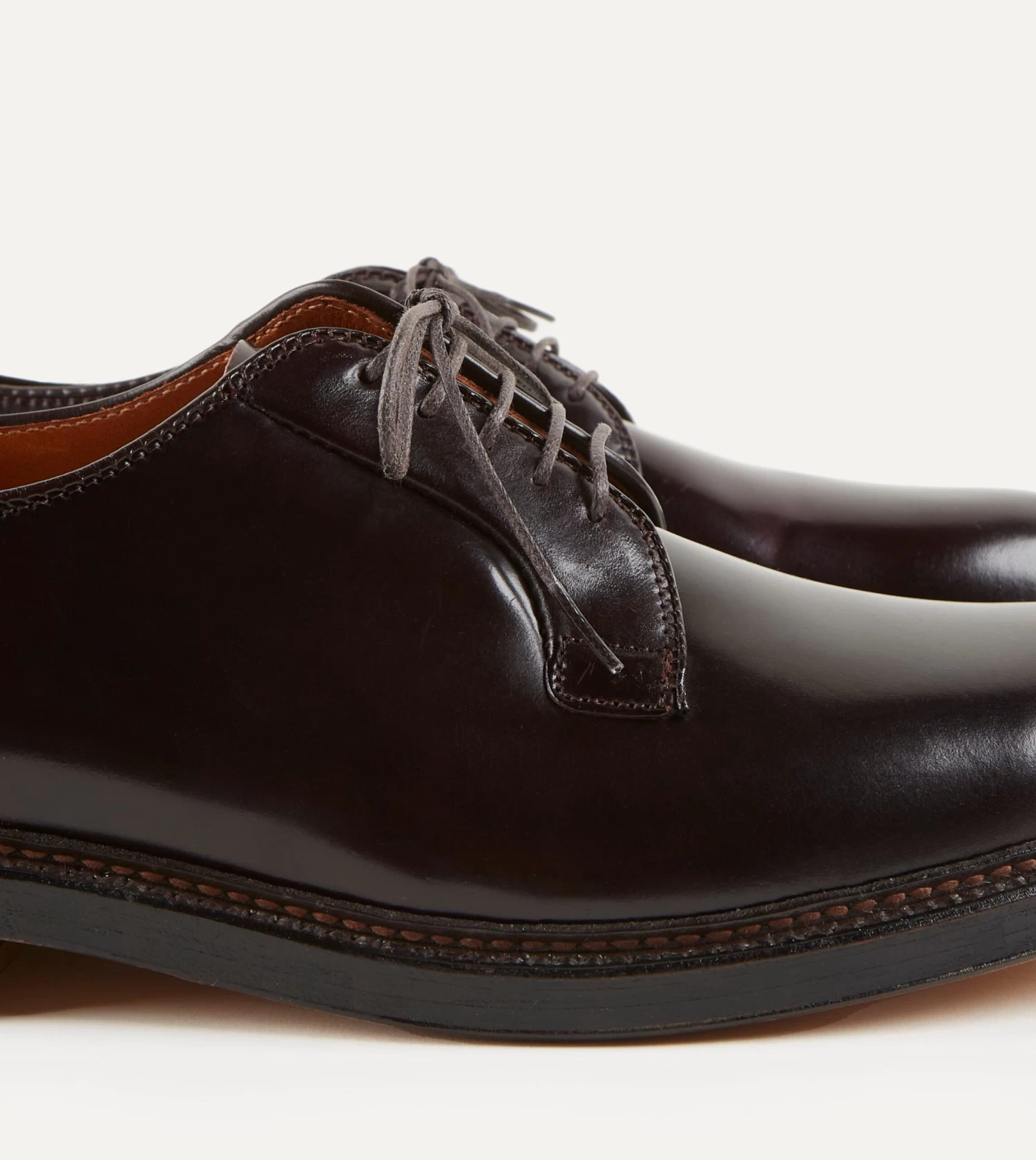 A certified classic from one of the USA’s finest shoemakers, the Alden plain toe blucher is a refined, elegant shoe with a softly rounded toe and a discreet profile. Handmade from cordovan – one of the highest quality and most durable leathers available – these shoes will age beautifully and pair with almost anything.