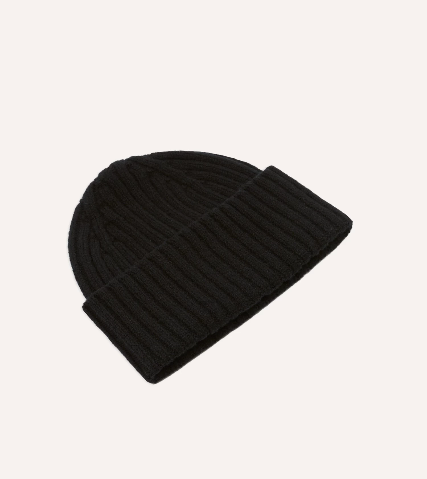 Black Lambswool Ribbed Knit Cap