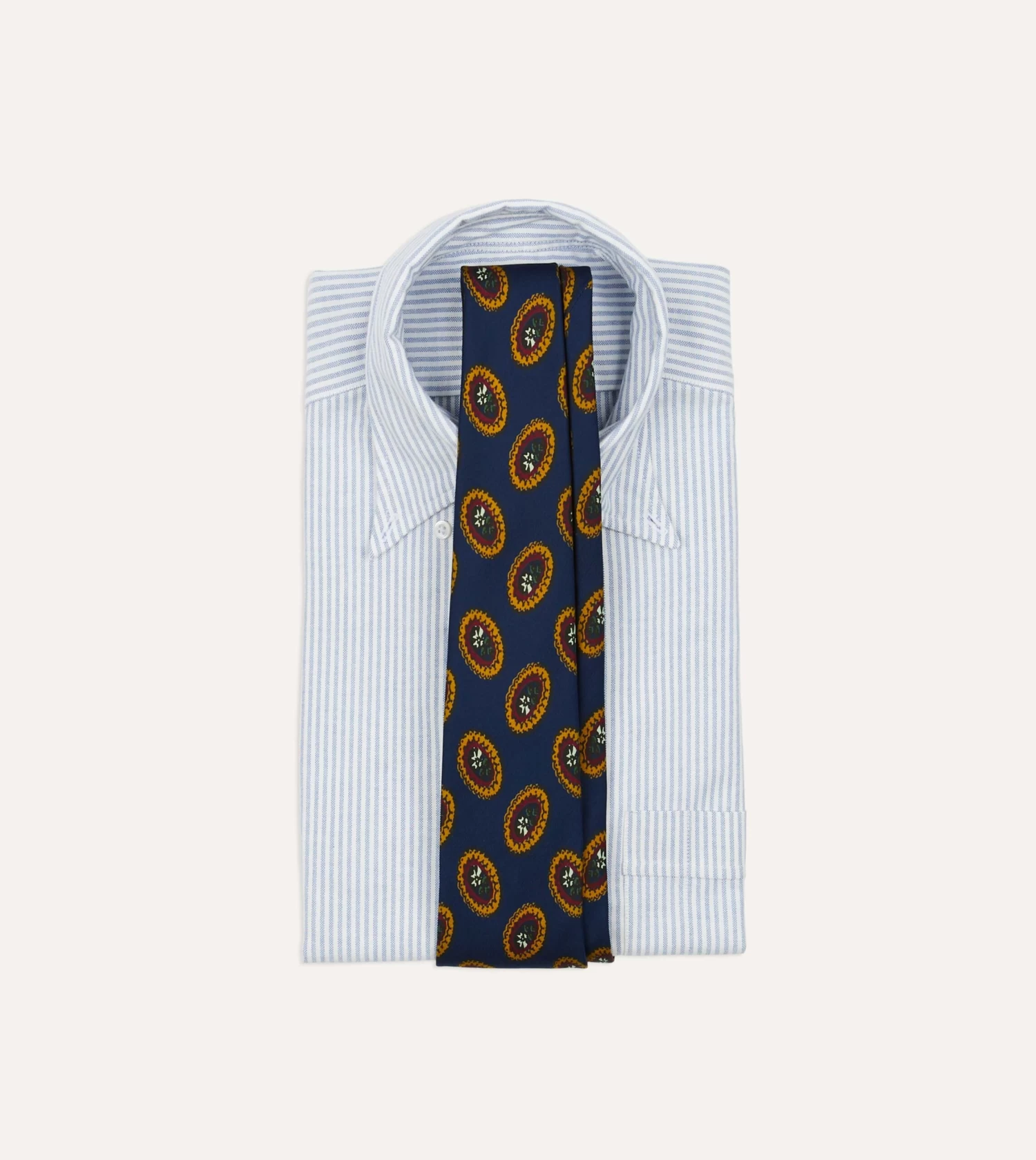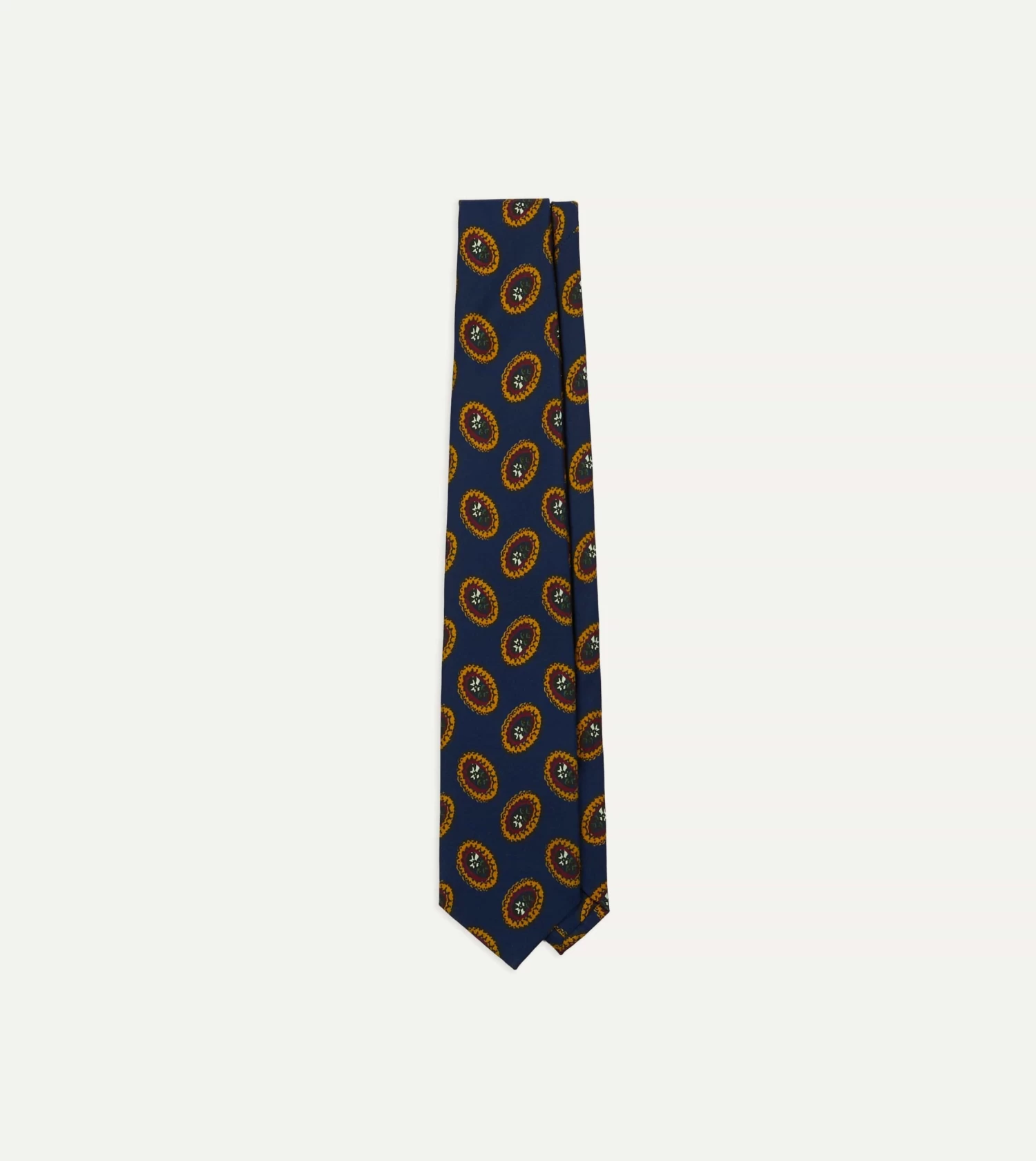 An ornate medallion design simply exudes elegance, particularly when printed on pure silk and hand rolled by our dedicated tiemakers in the heart of east London.