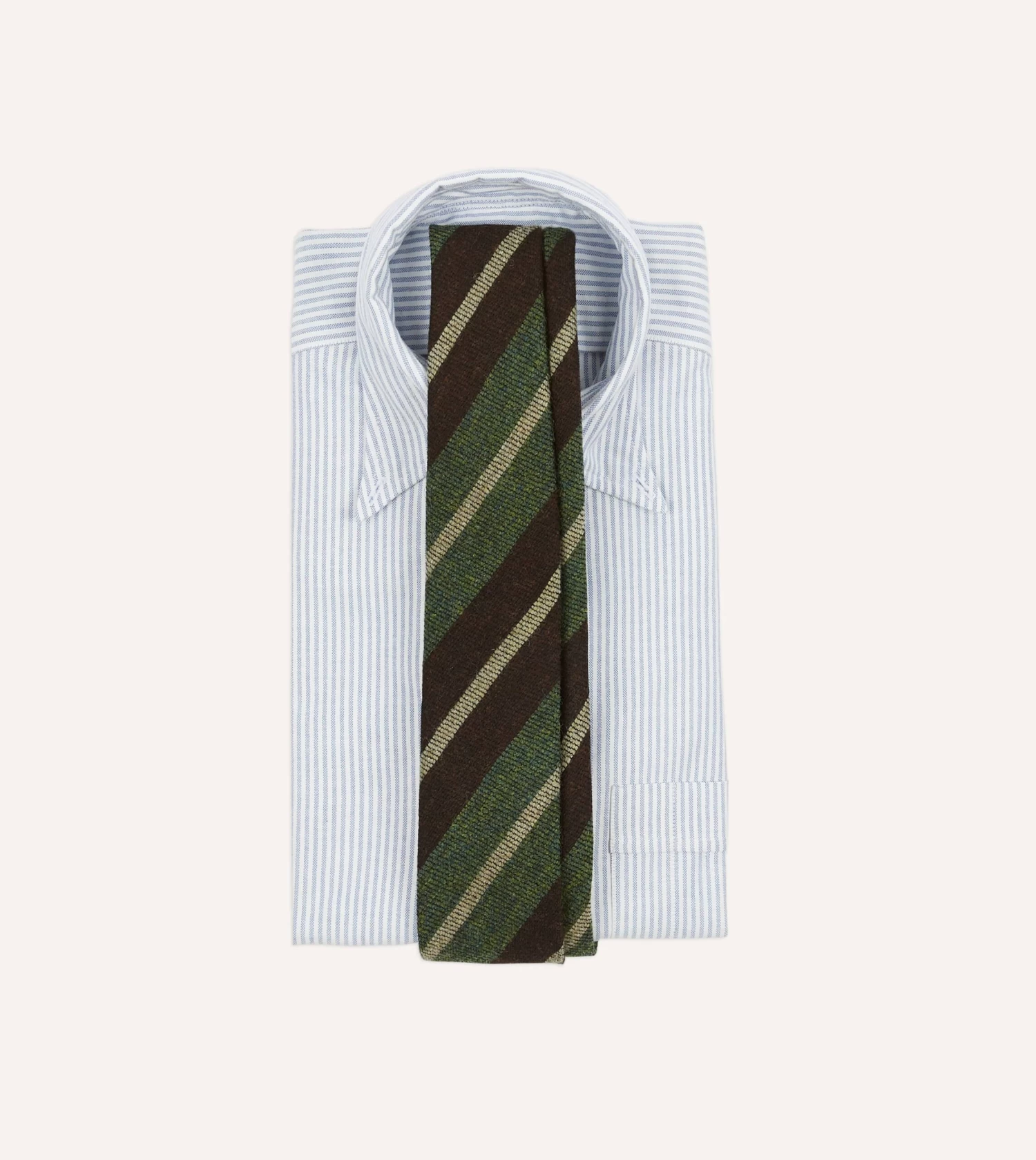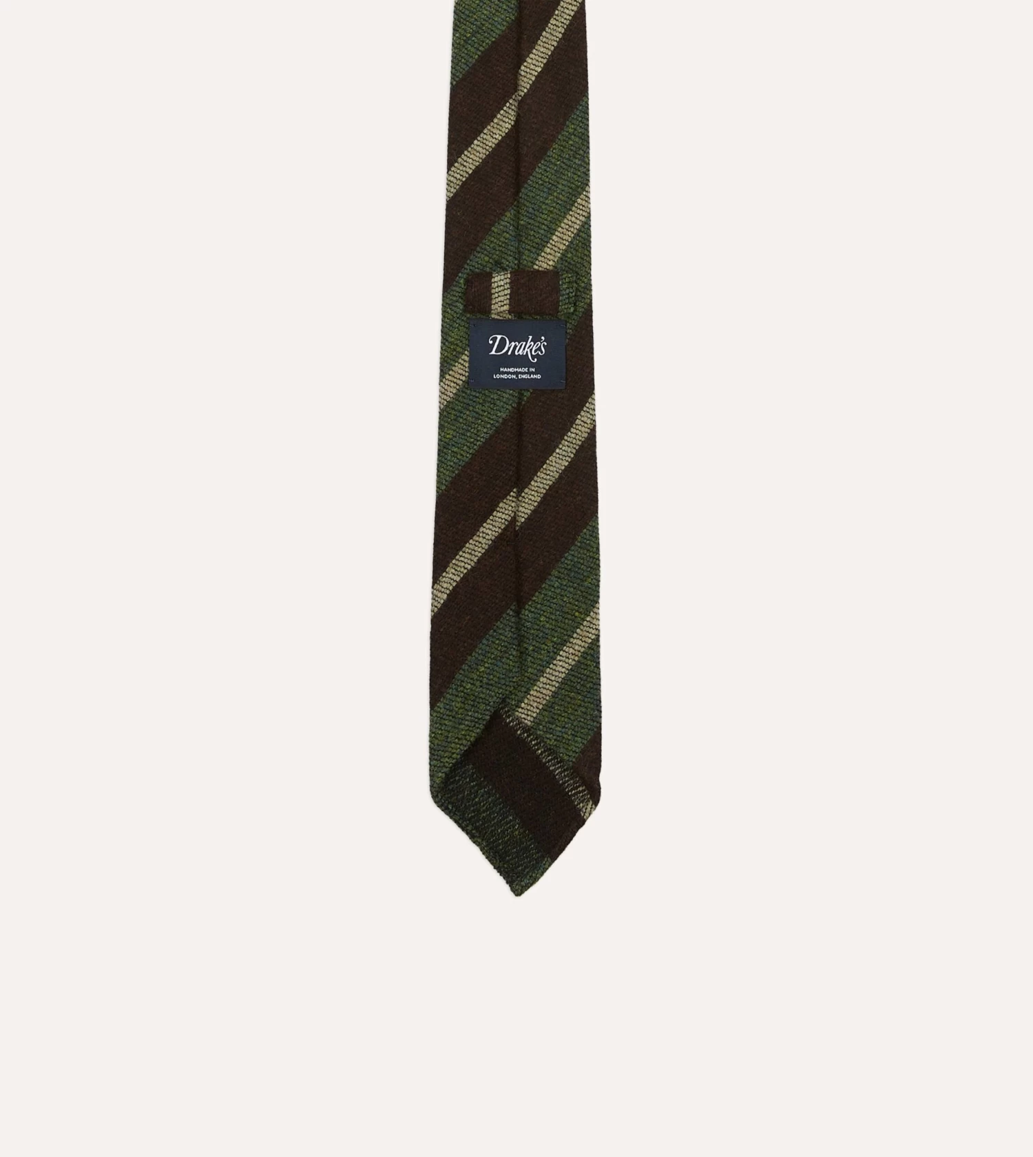 Brown And Green Block Stripe Herringbone Hand Rolled Shetland Wool Tie