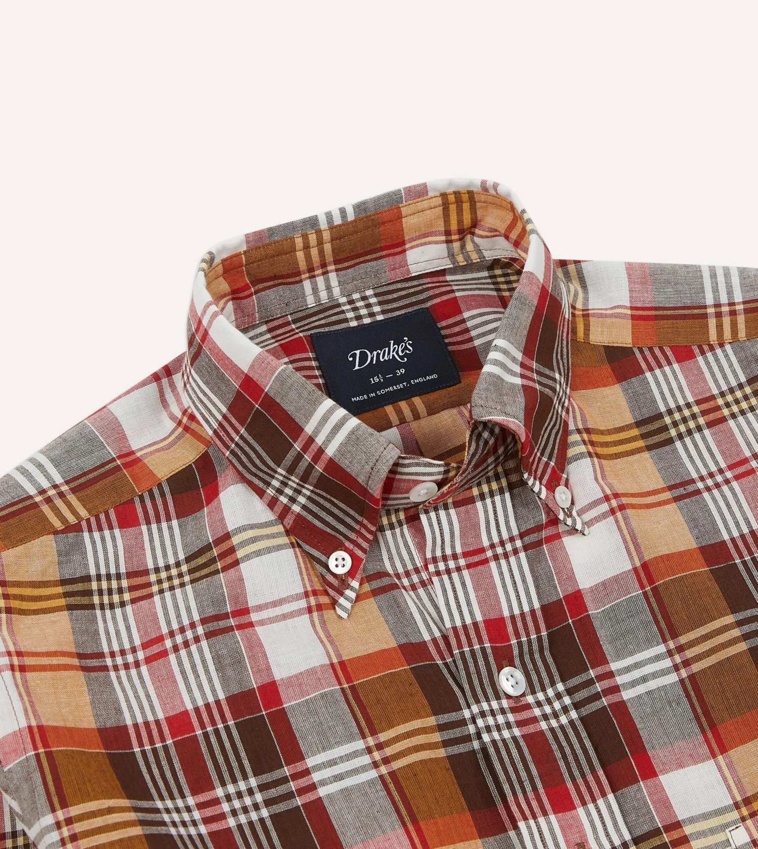 Brown And Red Madras Check Cotton Button-Down Shirt