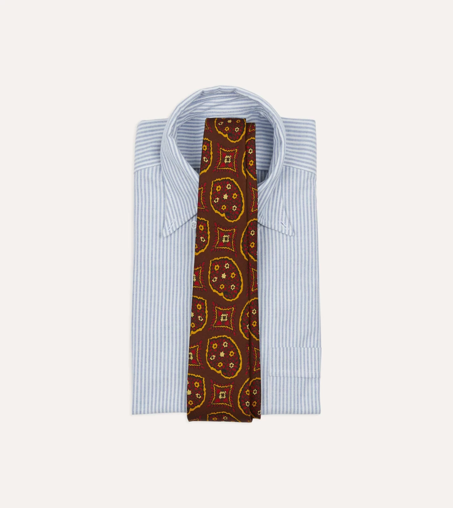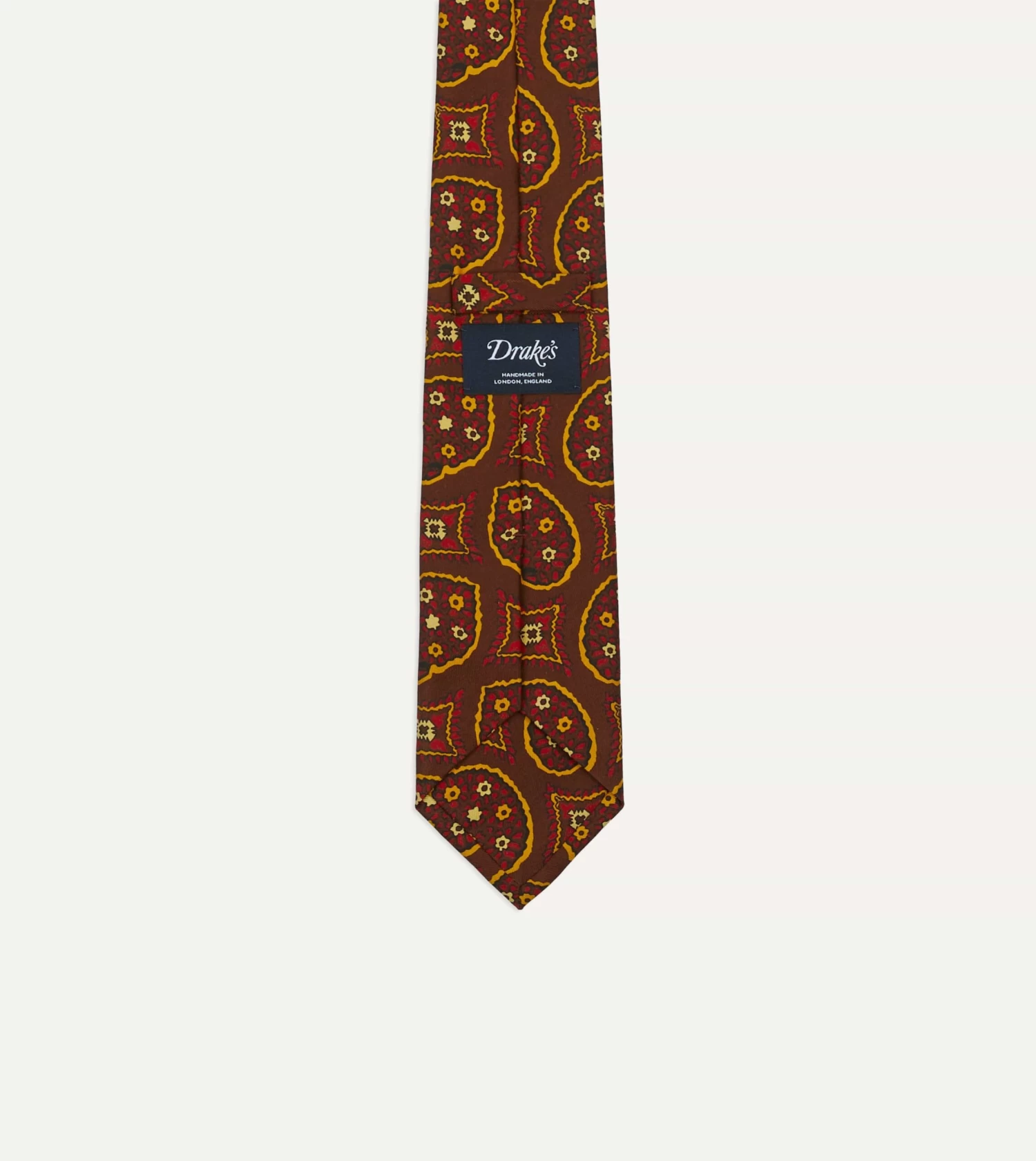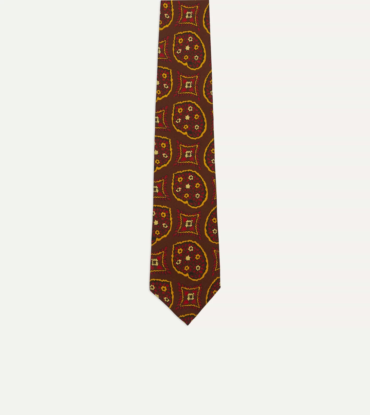 Brown Exploded Paisley Print Silk Self Tipped Tie