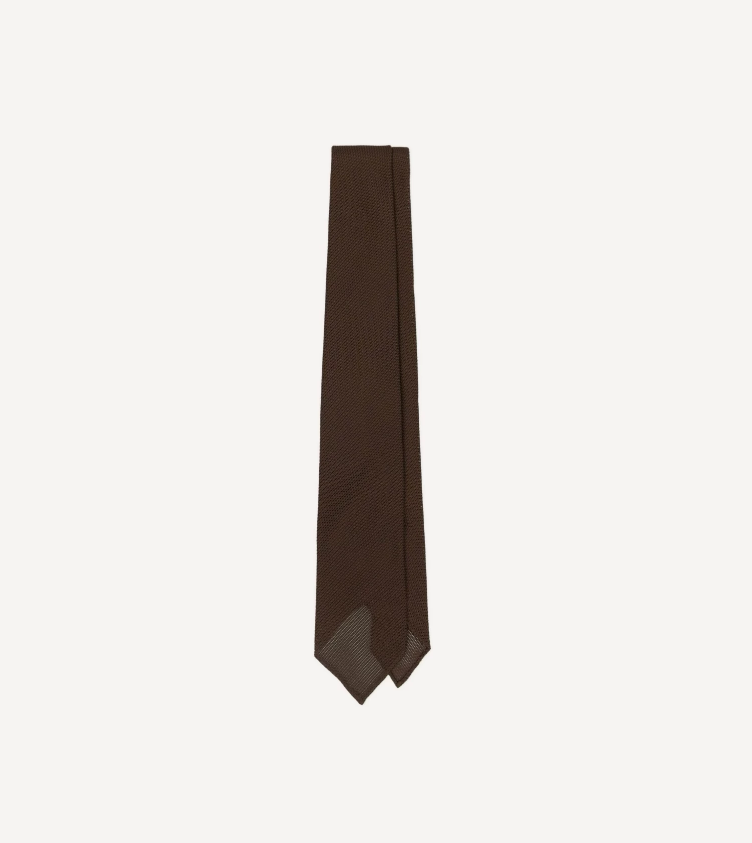 Brown Fine Woven Grenadine Silk Hand Rolled Tie