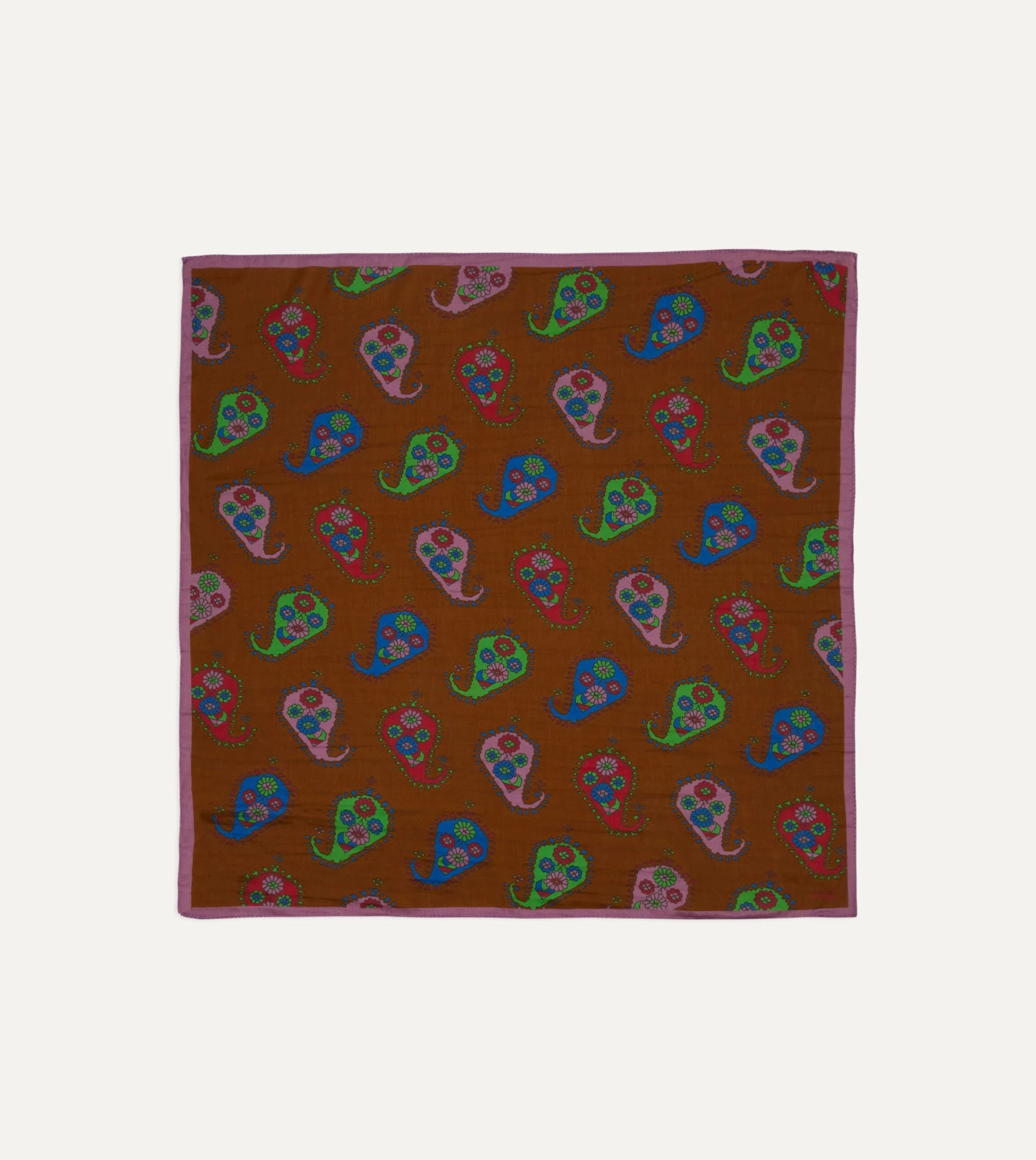 Taken from our extensive design archive, this classic flower paisley motif has been vividly applied to a blend of cotton and silk for a elegant and comfortable piece of neckwear.
