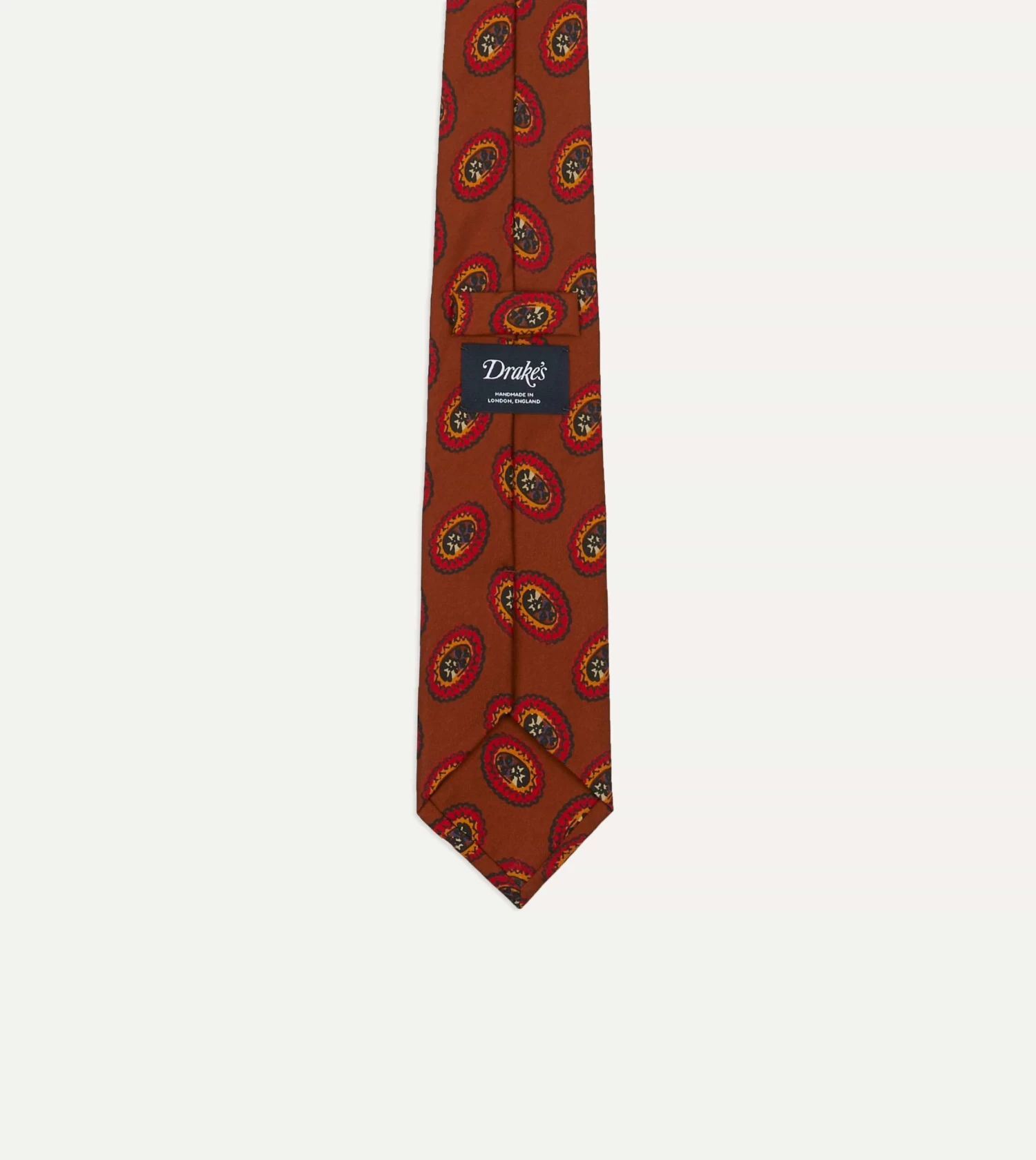 An ornate medallion design simply exudes elegance, particularly when printed on pure silk and hand rolled by our dedicated tiemakers in the heart of east London.