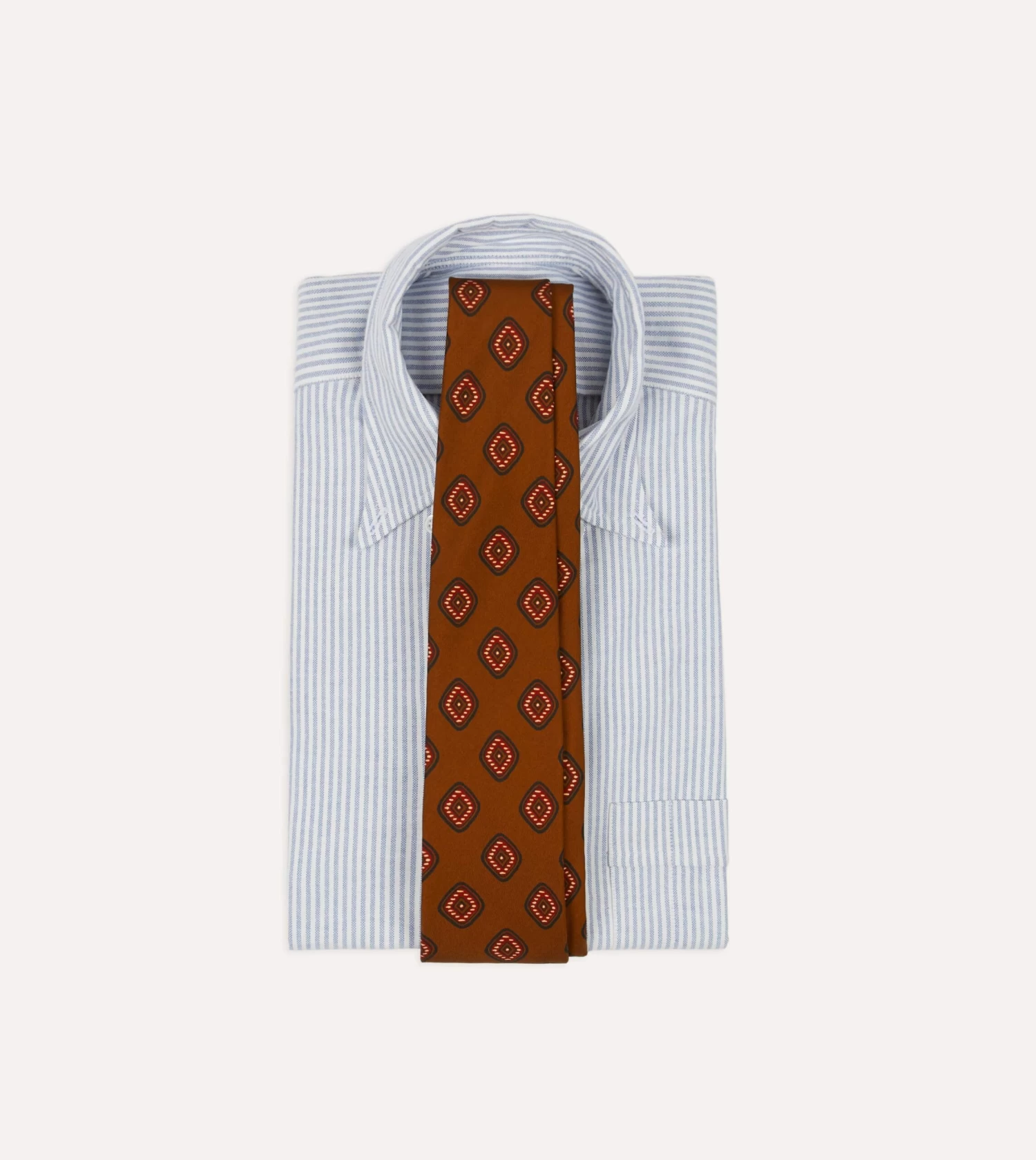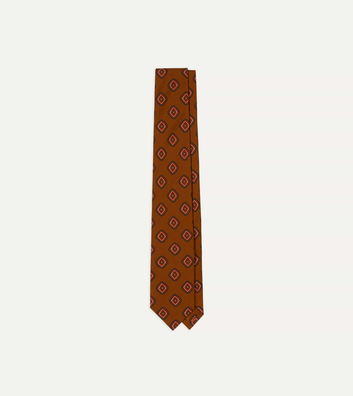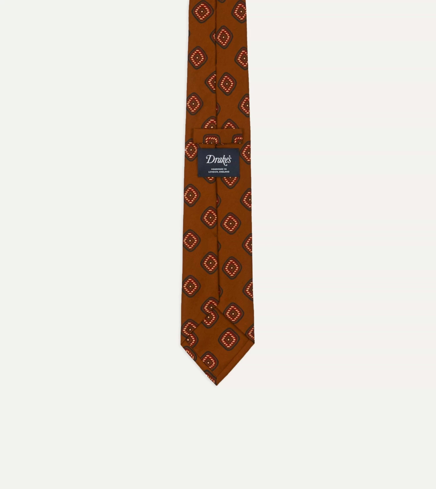 An elegant necktie, handmade in London and featuring an archival tile design, hand-printed in Macclesfield on 36oz Madder silk.