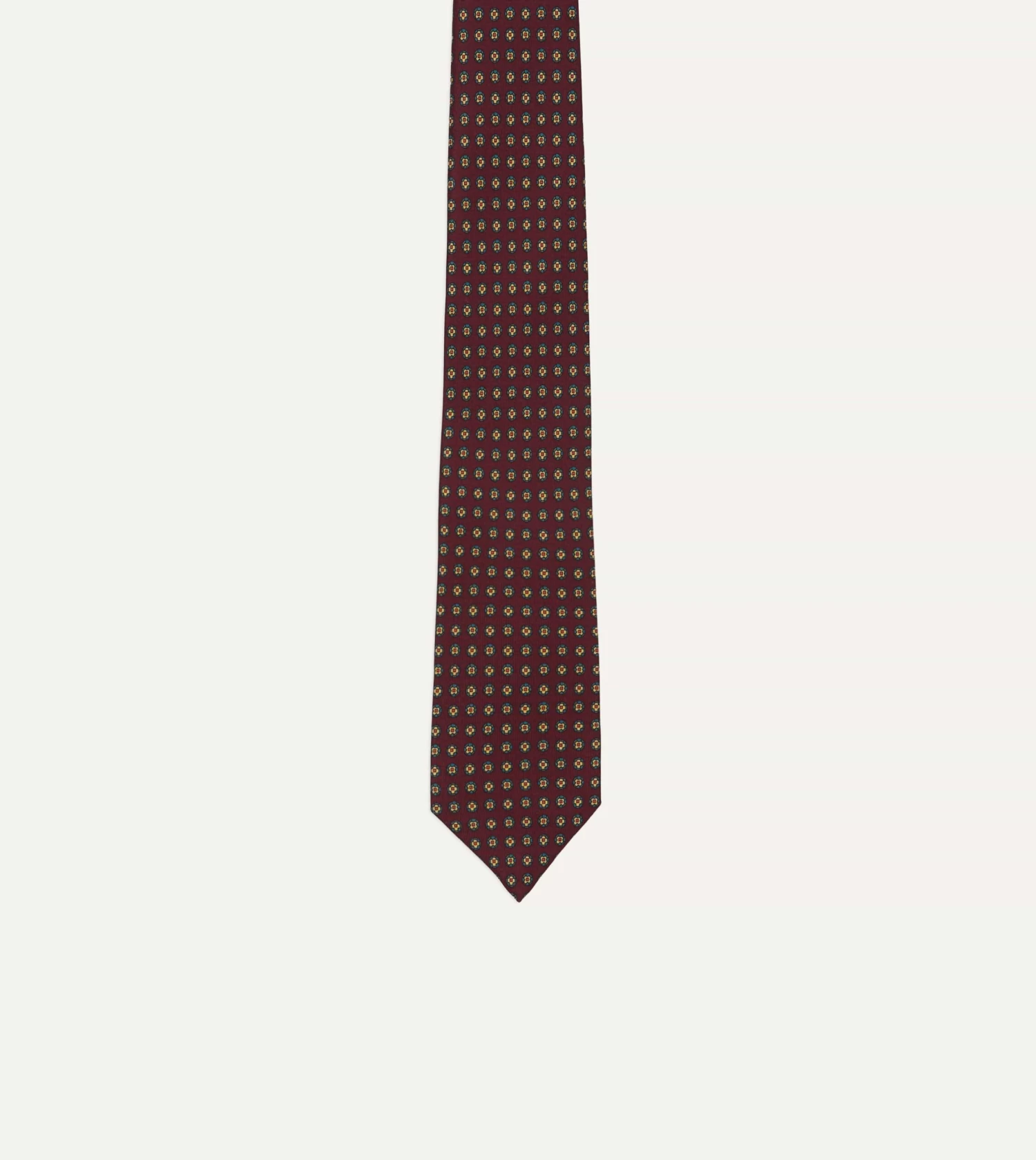 A jaunty geometric pattern creates a dynamic visual effect with this exquisite silk tie, handmade in our East London factory.