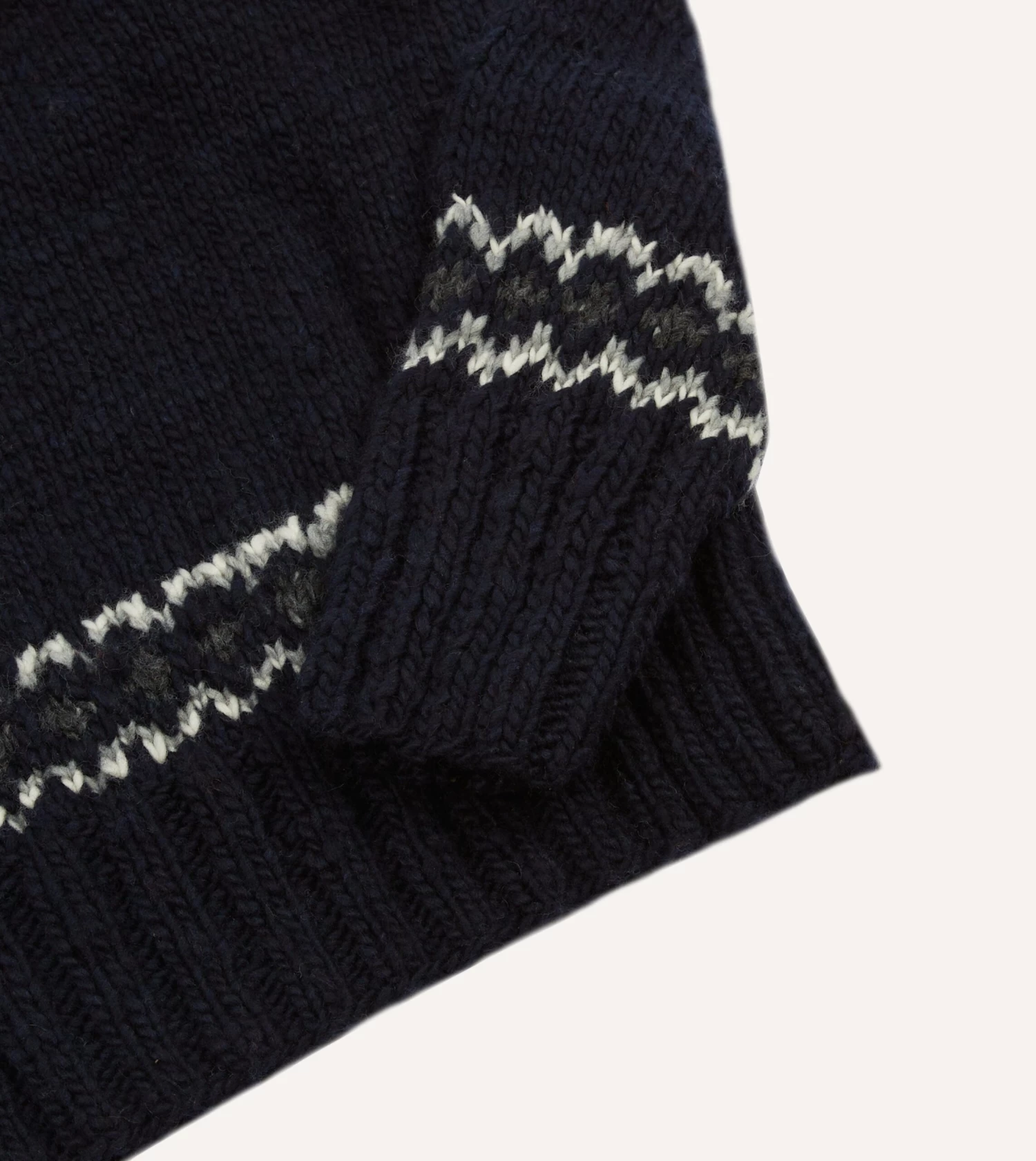 This crew neck jumper features raglan sleeves and a traditional Fair Isle design.