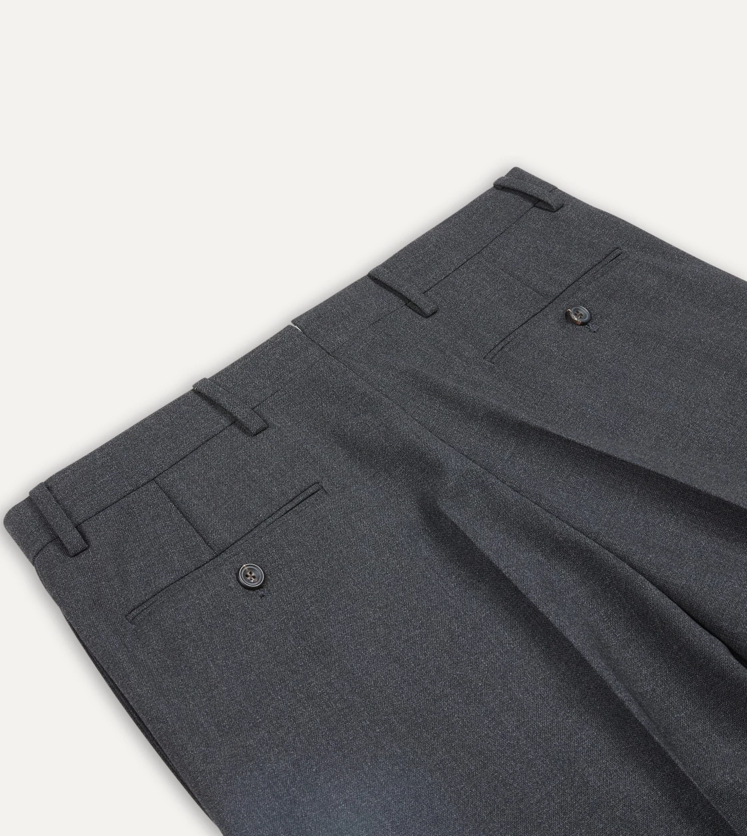 Crafted from a high-twist tropical merino wool, the half-lined trousers feature understated details such as an extended tab front, French bearer valueing with interior waistband curtaining, an after-dinner split to the rear, and a prong keeper for securing a belt buckle.