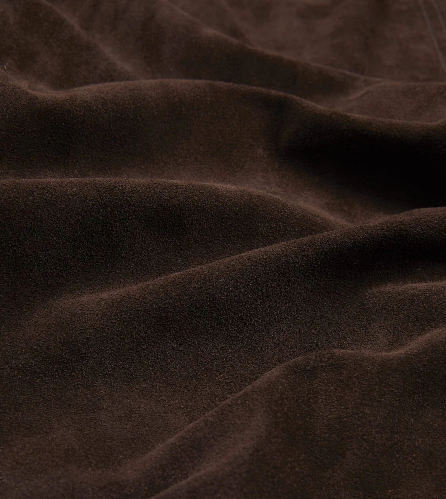 Where many suede jackets can feel lightweight and flimsy, we opted for a rugged, heavyweight ‘crosta’ suede, which is often used in accessories, and has an unparalleled drape. Finished with flat, raw seams and triple stitching, this is a garment designed to be as tough and hardwearing as possible.