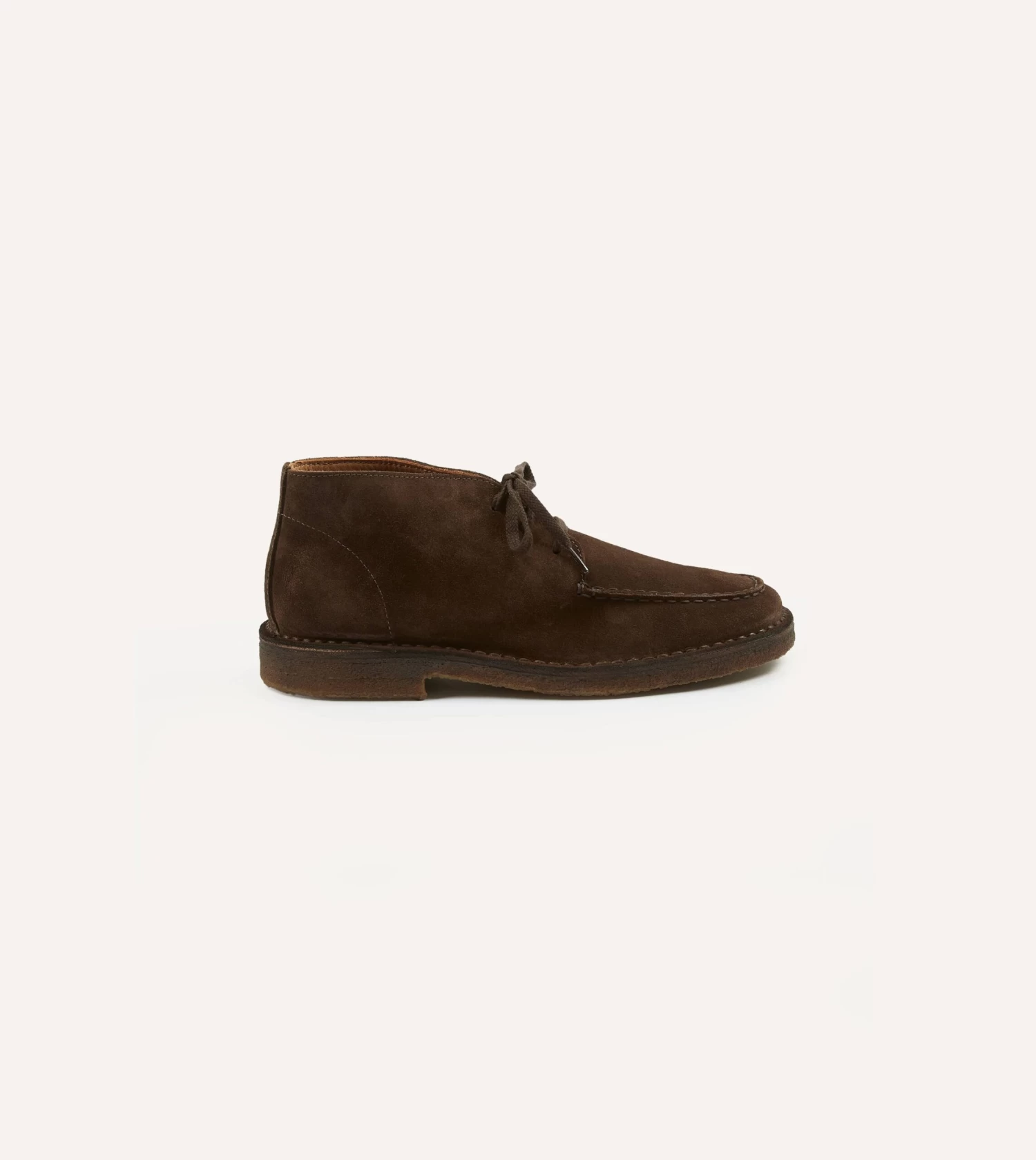 The cousin to our popular Clifford Desert Boot, the Crosby takes a three-eyelet silhouette and adds distinctive moccasin-style stitching around the vamp, creating a style which is at once rugged and refined. As with the Clifford boot, these shoes are superior in their construction, using premium suede uppers and hardy rubber crepe soles. Extraordinarily versatile, they will pair with denim and knitwear on the weekend, or soft tailoring in the week.