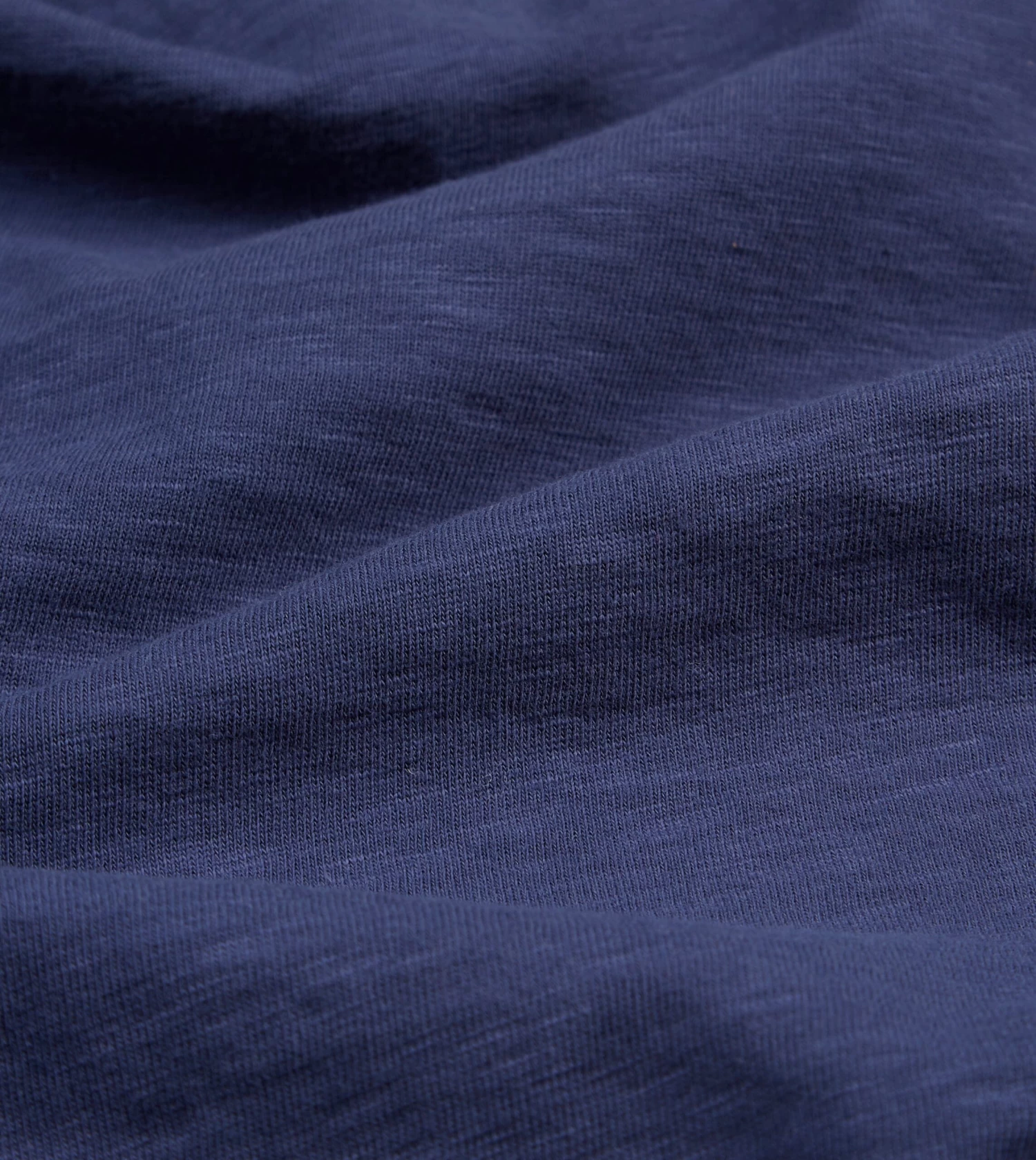 Cut in a classic shape using a cotton flamé fabric with a slightly slubby texture and a comfortable stretch, this staple t-shirt is sporty and versatile, with understated details reminiscent of mid-Century sporting apparel.