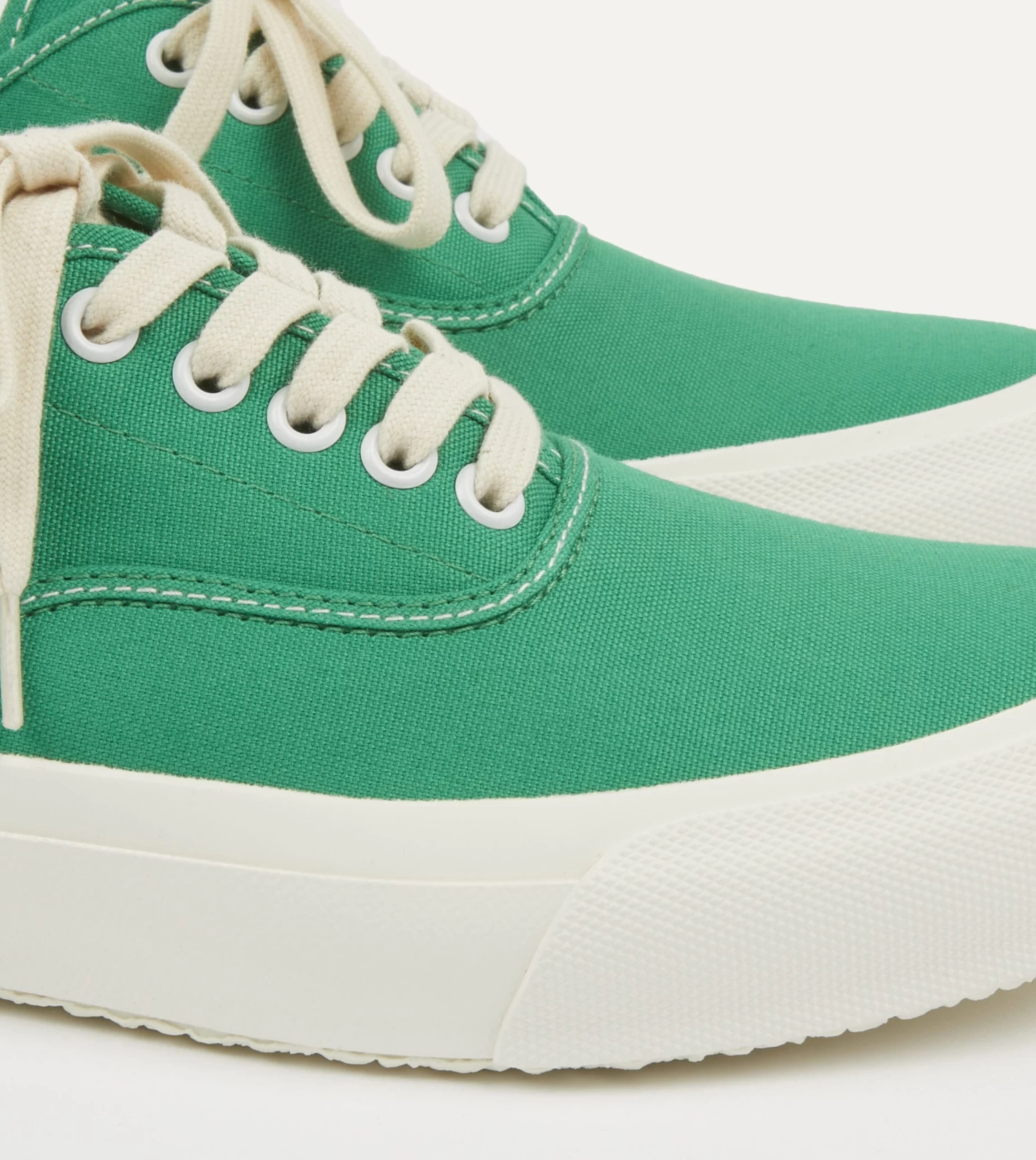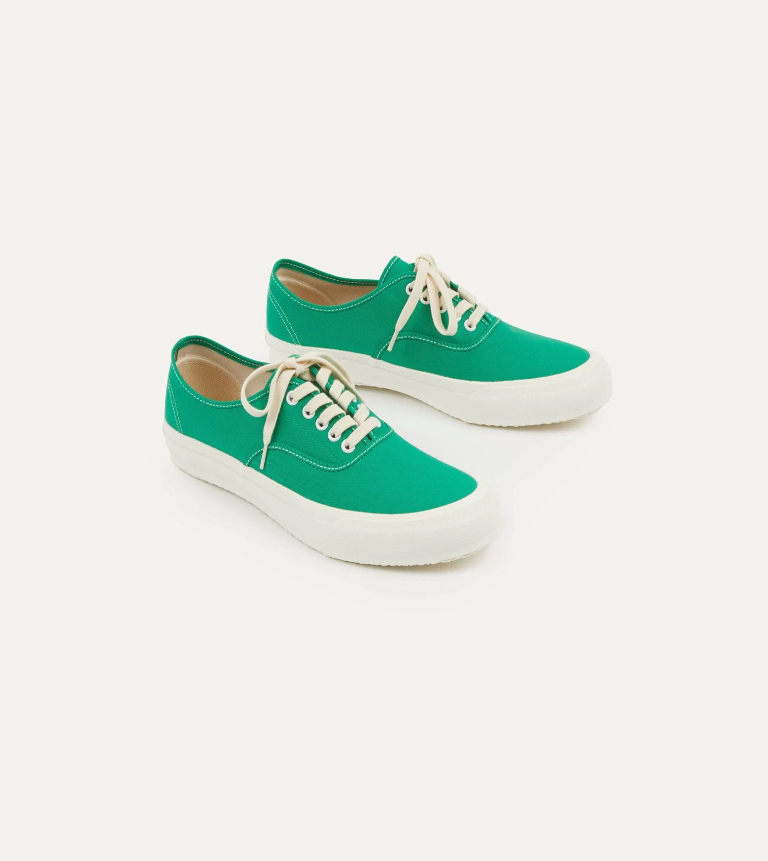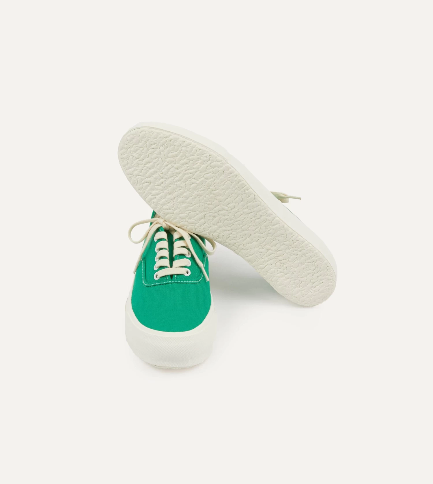 Japan’s reigning kings of canvas, Doek offer a take on the classic oxford tennis shoe that is rightly applauded for both its quality and style. An upper crafted from hardy kasuri canvas, produced in the Kurume region of Japan since the 1800s, sits atop a kiln-baked rubber sole, and a natural cork footbed provides naturally moulded support as well as moisture-resistance and breathability.
