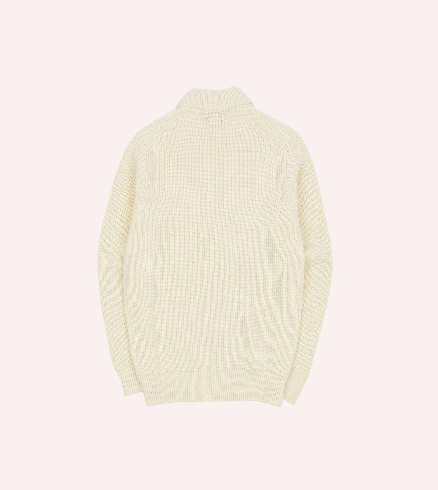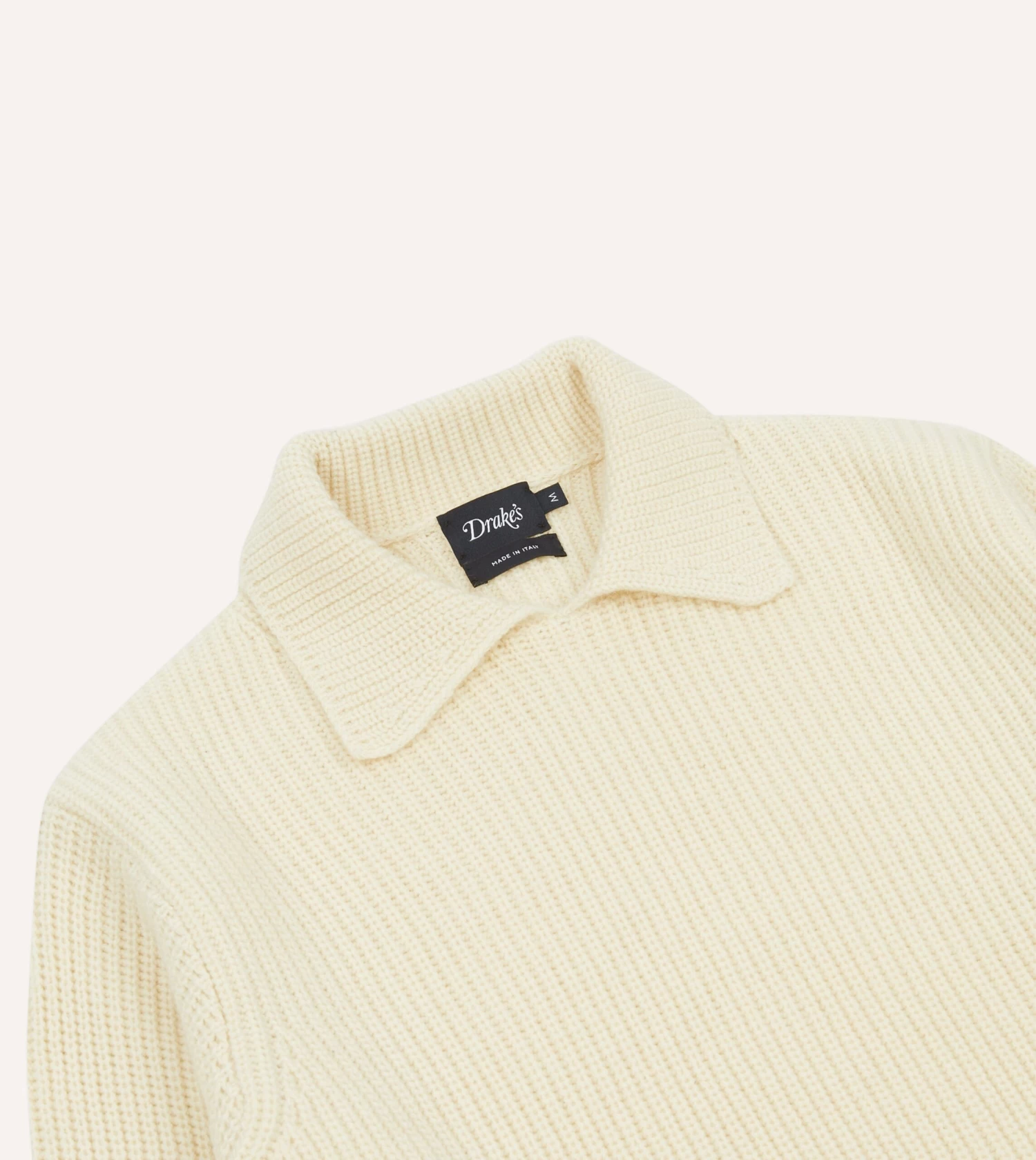 A distinctive style of knitwear, this classic style jumper is topped with an integral polo collar that is rigid enough to stay up, but offers a graceful fold.