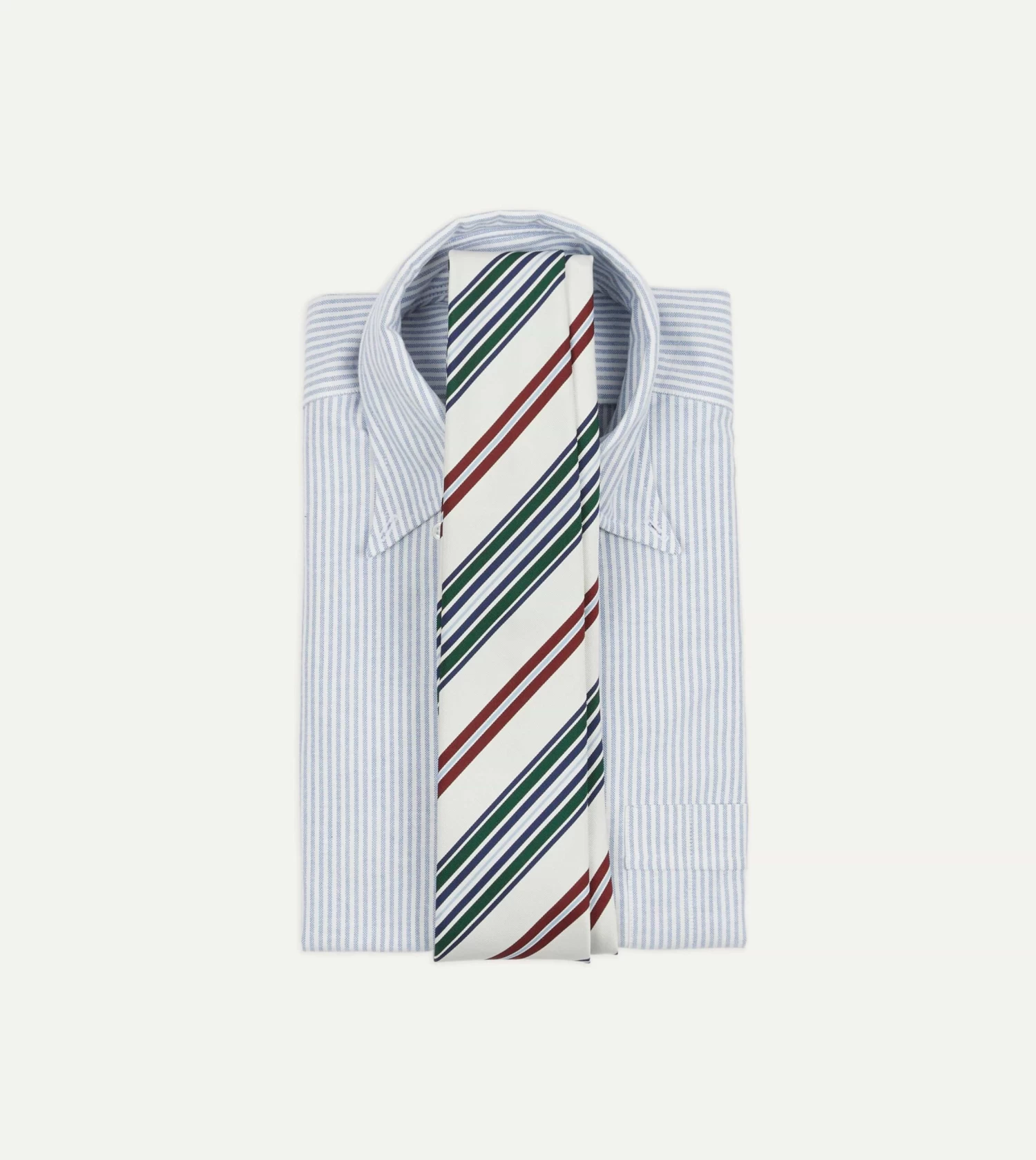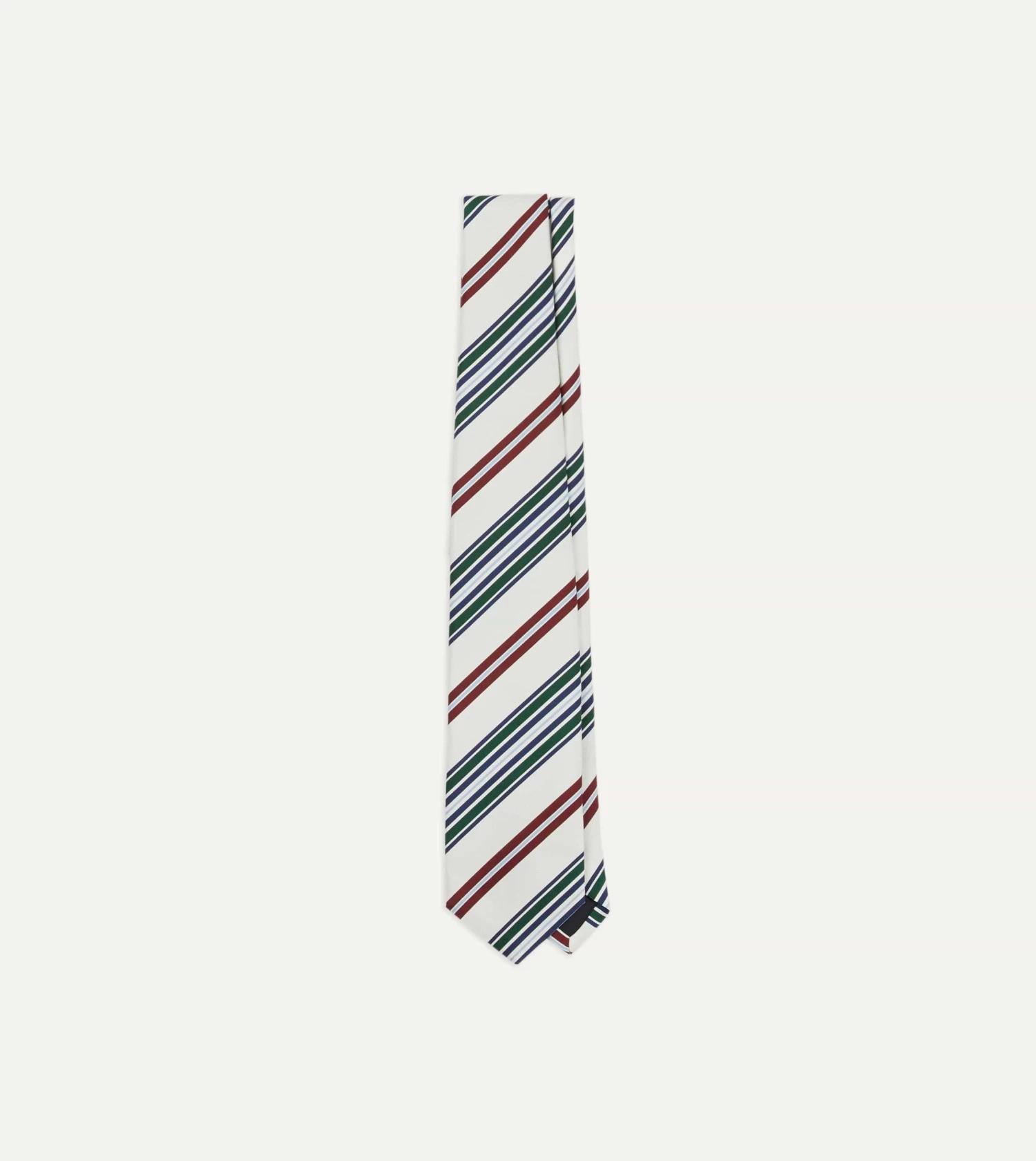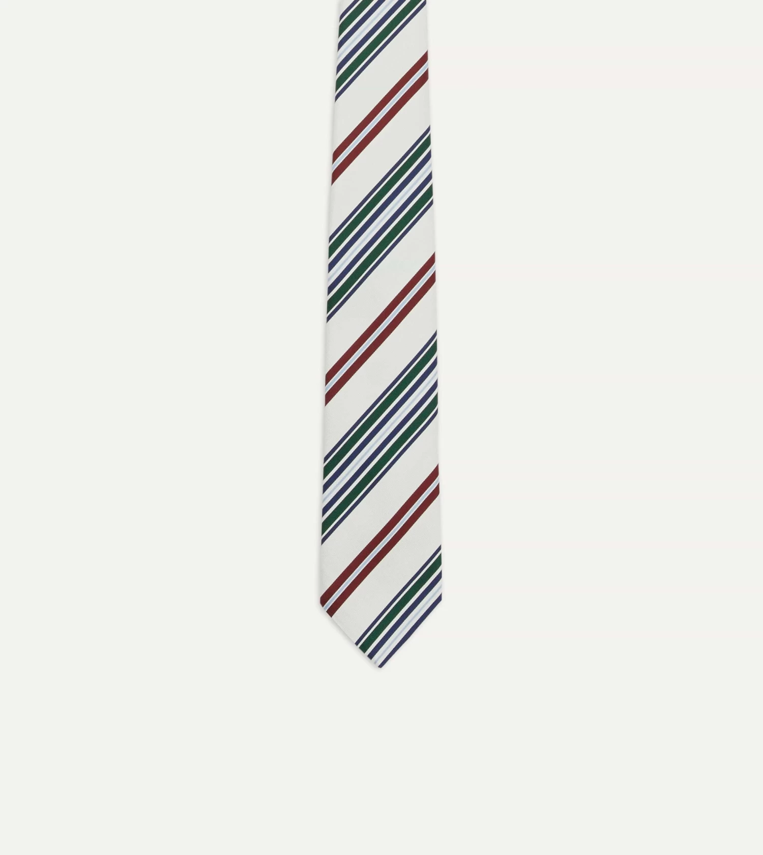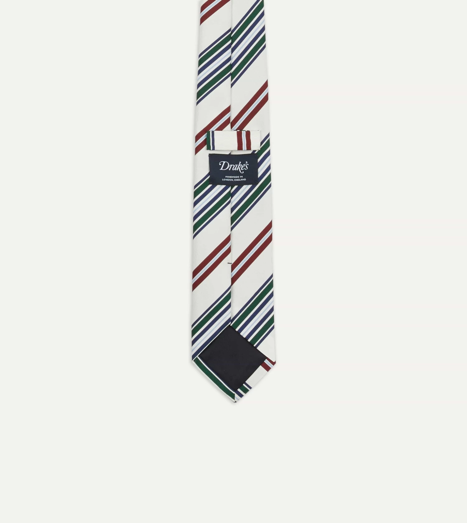 Cut from a beautiful mogador cloth, which blends silk and cotton for a substantial hand and a matte finish, this tie makes an impression with a bold coloured stripe motif.