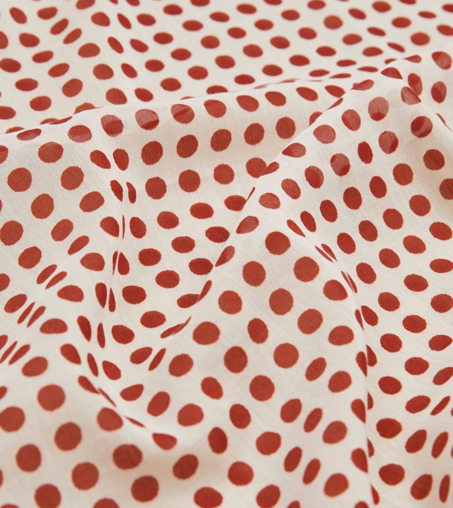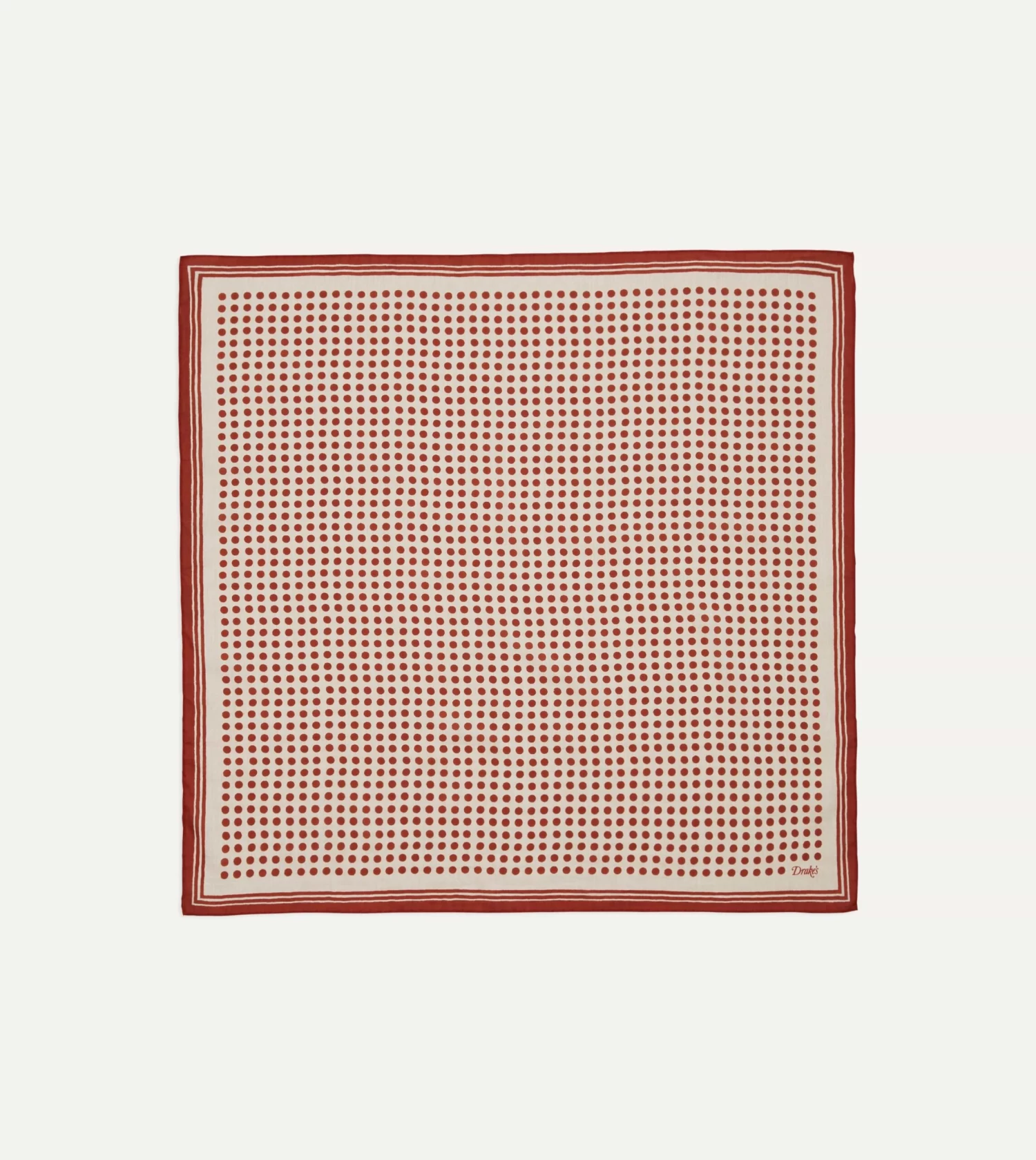 Ecru And Red Spots Print Silk-Cotton Bandana