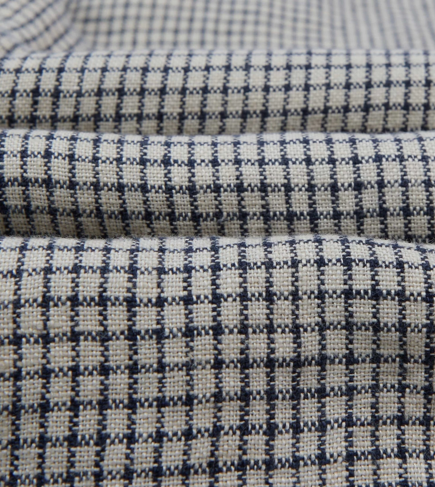 Where previous iterations could be found in corduroy or moleskin, we’ve instead opted for a lightweight Italian linen in a fitting graph check. Retaining the iconic mandarin collar, we’ve brought the jacket up to date with a slightly slimmer silhouette and three generous patch and flap pockets, plus two internal pockets, to stash your compasses, set squares, or anything else an architect on-the-go may require.