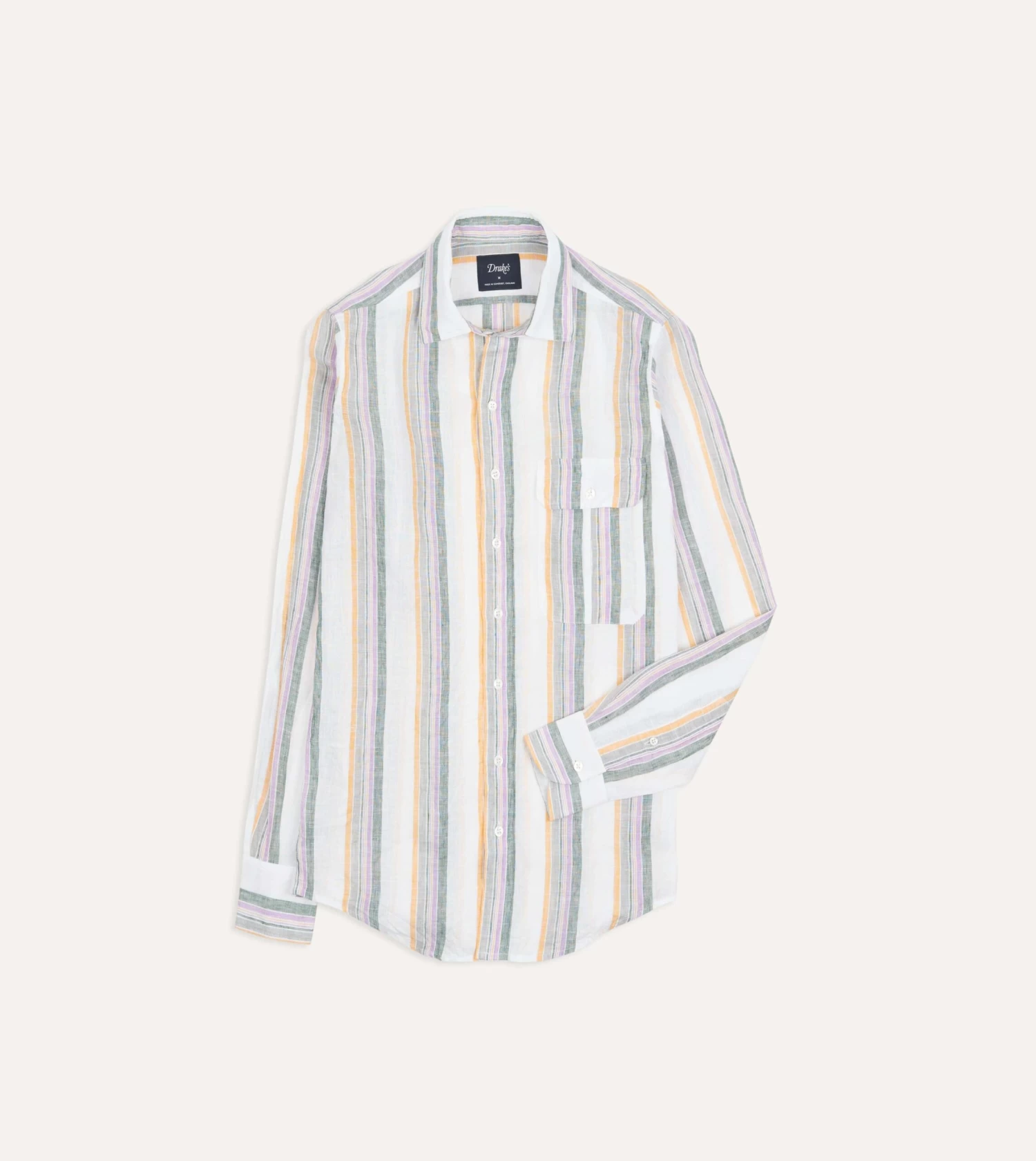Woven in Como, Italy exclusively for Drake’s, this lightweight linen piece features a spread collar and the same the same single-needle construction and mother of pearl values de rigueur to Drake’s shirting.