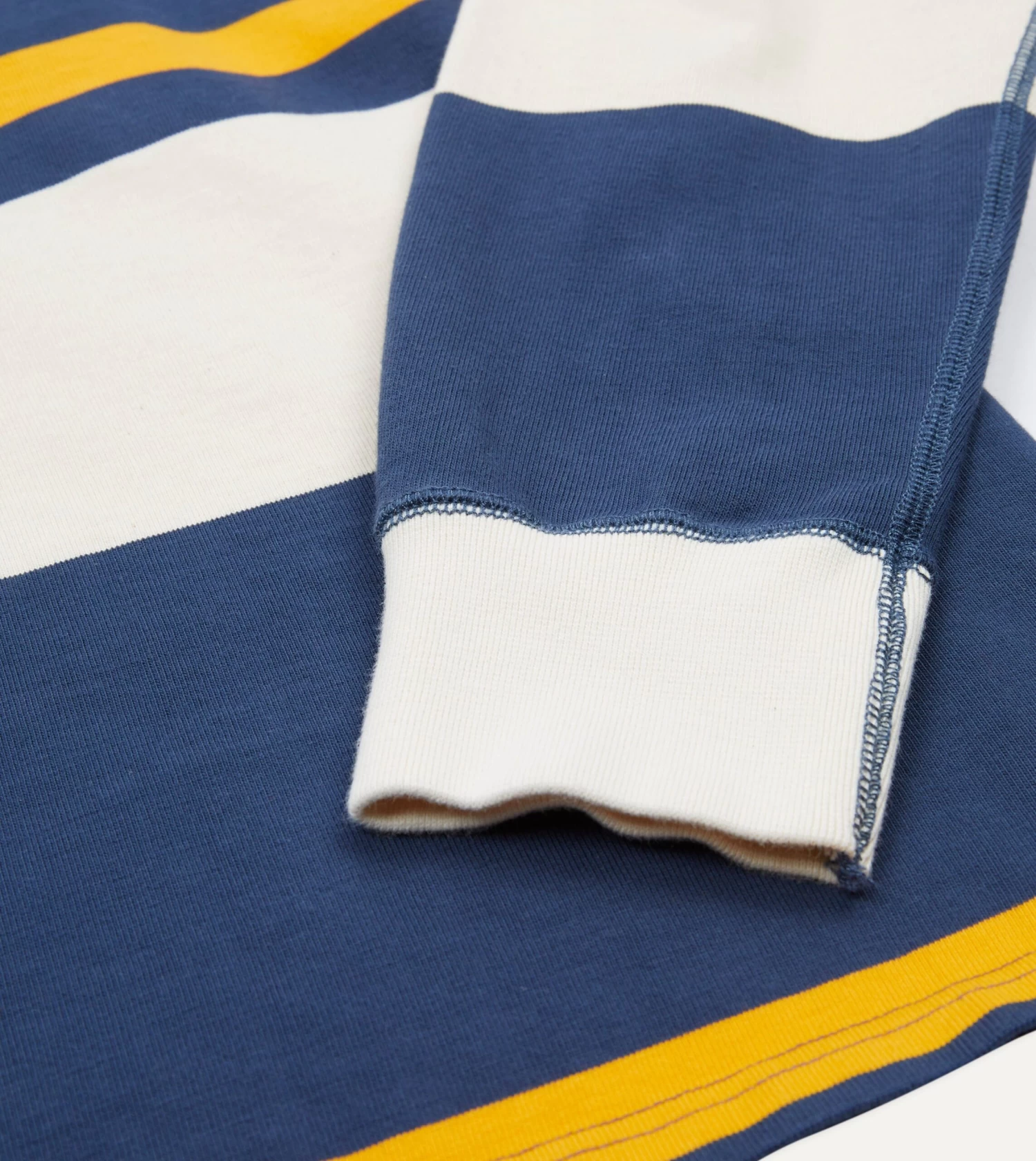The rugby shirt has steadily become a staple of our collections, and this time around is no different. Cut from a densely knitted cotton, our idiosyncratic take on an enduring bit of vintage sportswear has a substantial feeling to it, as well as a certain tactility.