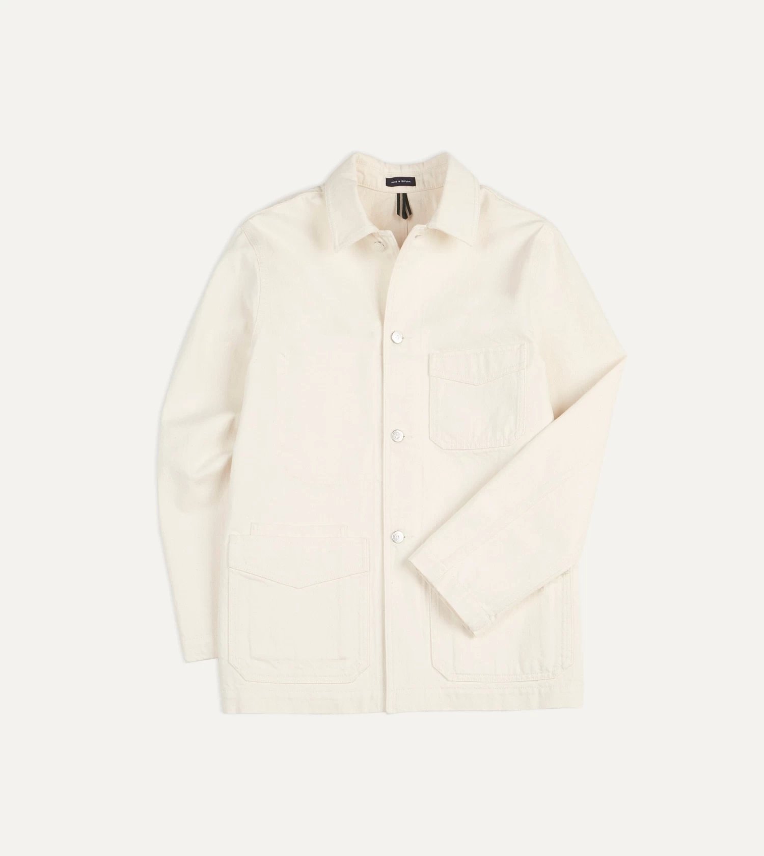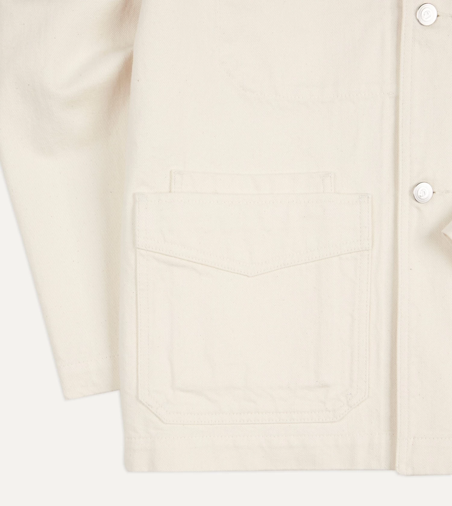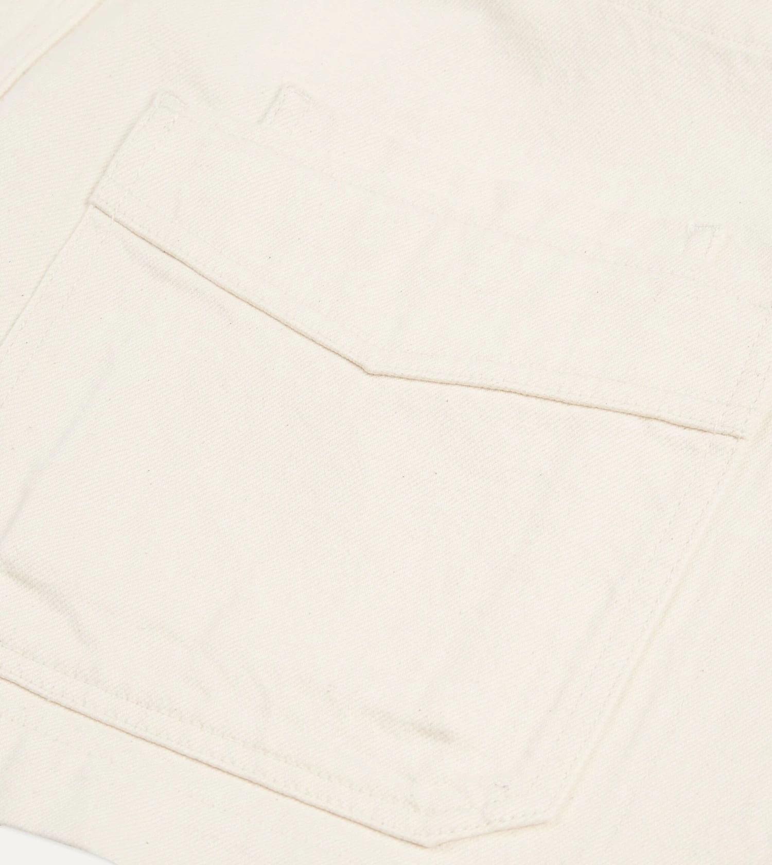 A staple of casual wardrobes the world over, the chore jacket retains its relevance on account of its stylishly spare construction, and its utmost versatility. This version is made from a rugged selvedge denim, with three outer pockets (plus a signature Drake’s ticket pocket peaking out on the left-hand side), and one inner pocket. It is cut generously, with a slightly boxy shape recalling the original workwear garments worn around the turn of the century, as opposed to their slimmed-down, contemporary counterparts.