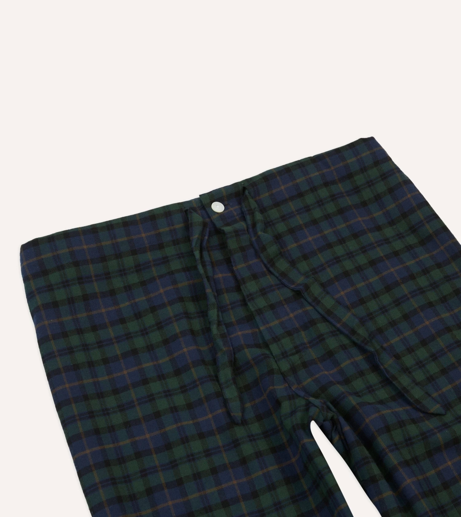 the trousers feature mother of pearl values alongside a drawstring waist, for an elegant and comfortable loungewear set.