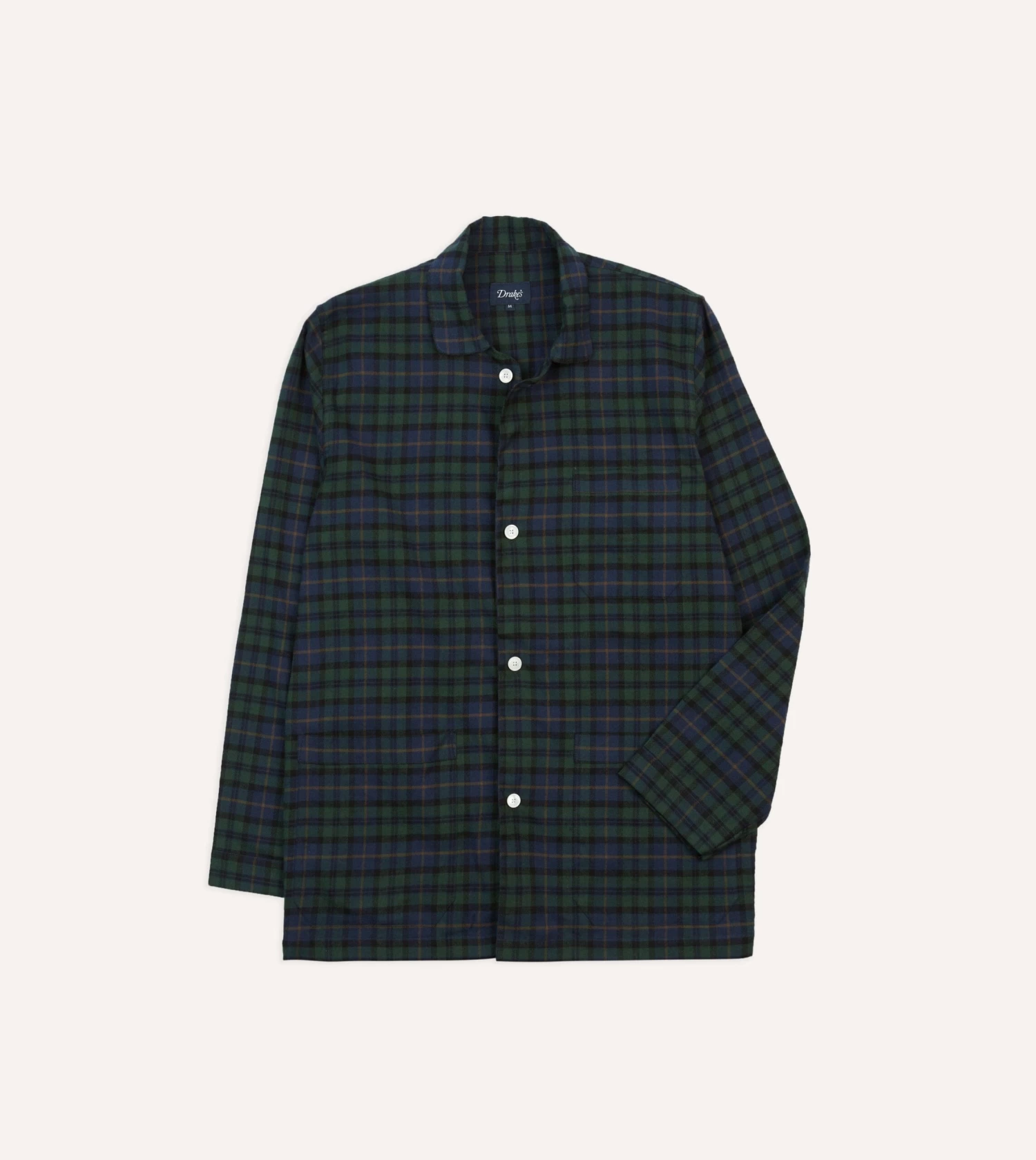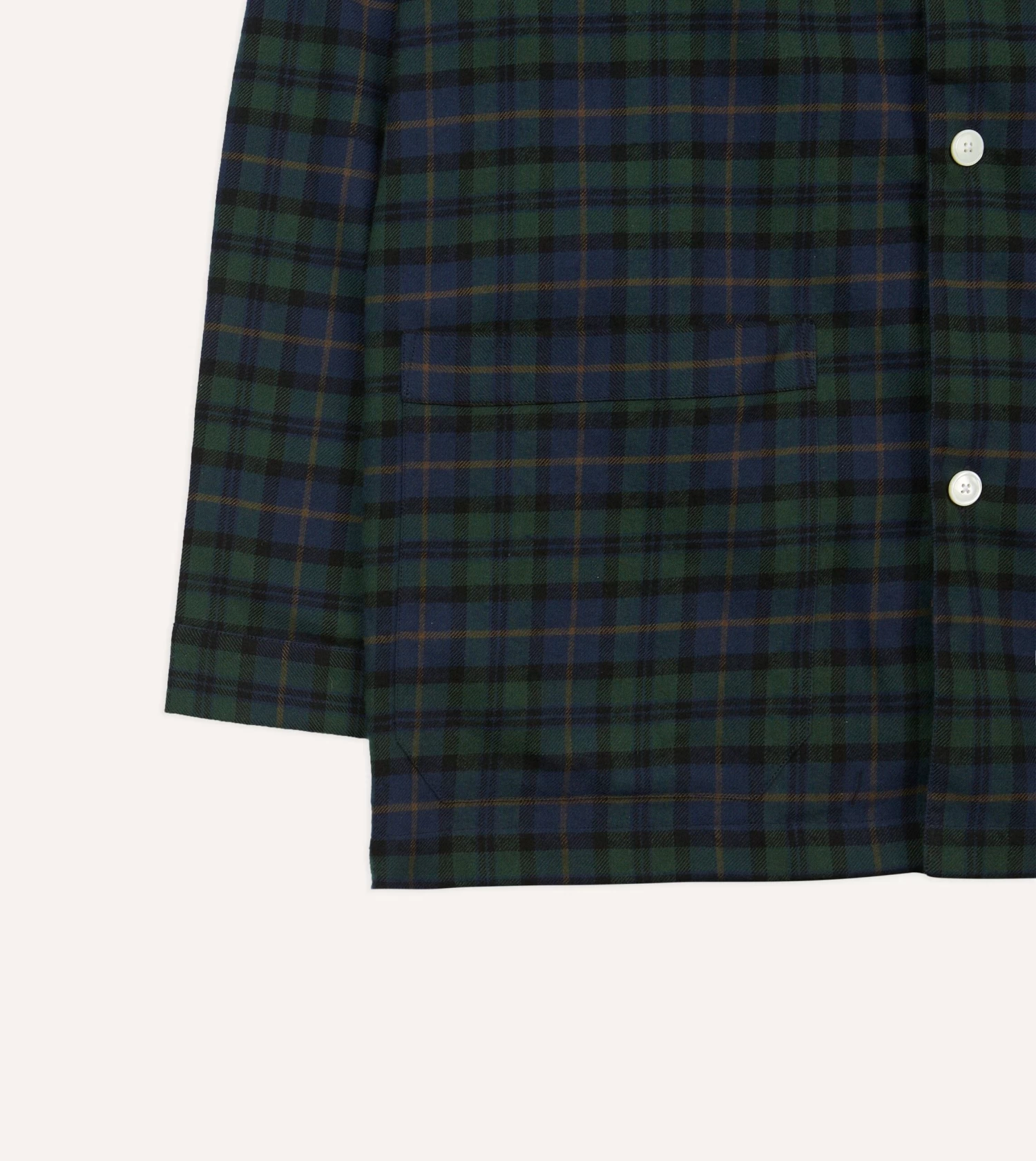 Constructed from a breathable and cosy cotton, this pyjama set features a value front shirt with a rounded collar, three patch pockets and square hem.