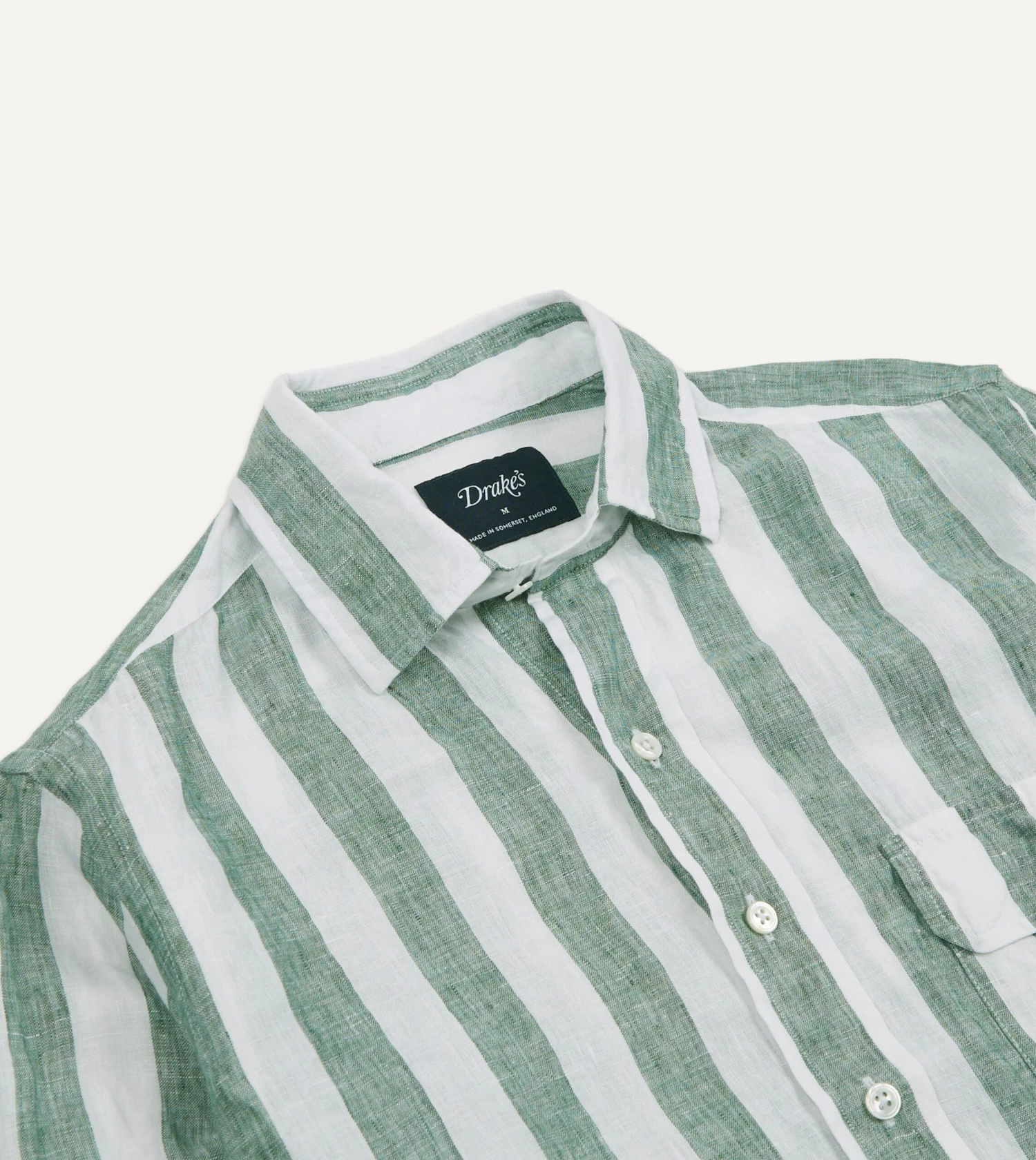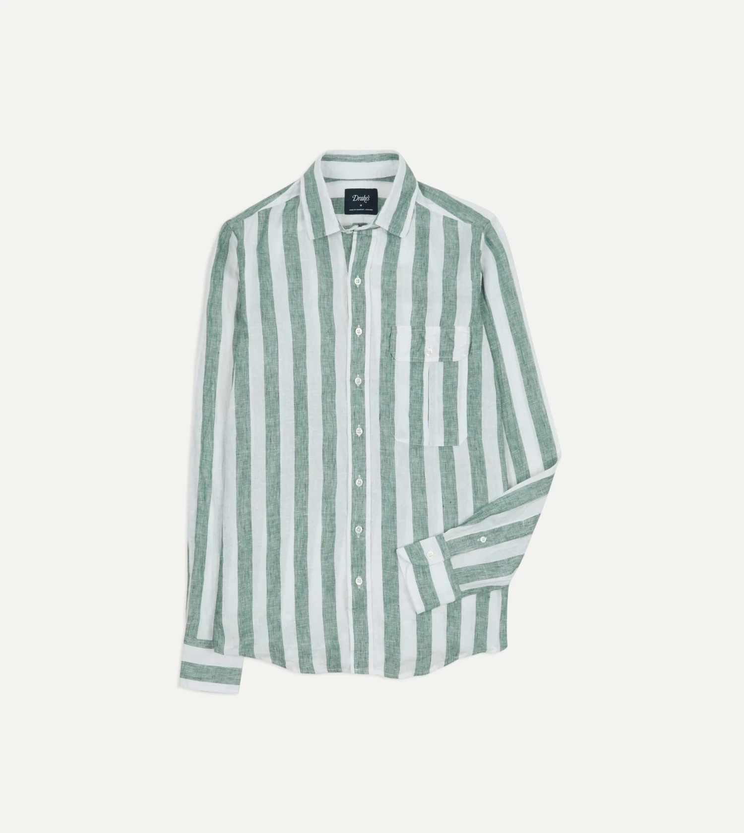 Woven in Como, Italy exclusively for Drake’s, this lightweight linen piece features a spread collar and the same the same single-needle construction and mother of pearl values de rigueur to Drake’s shirting.