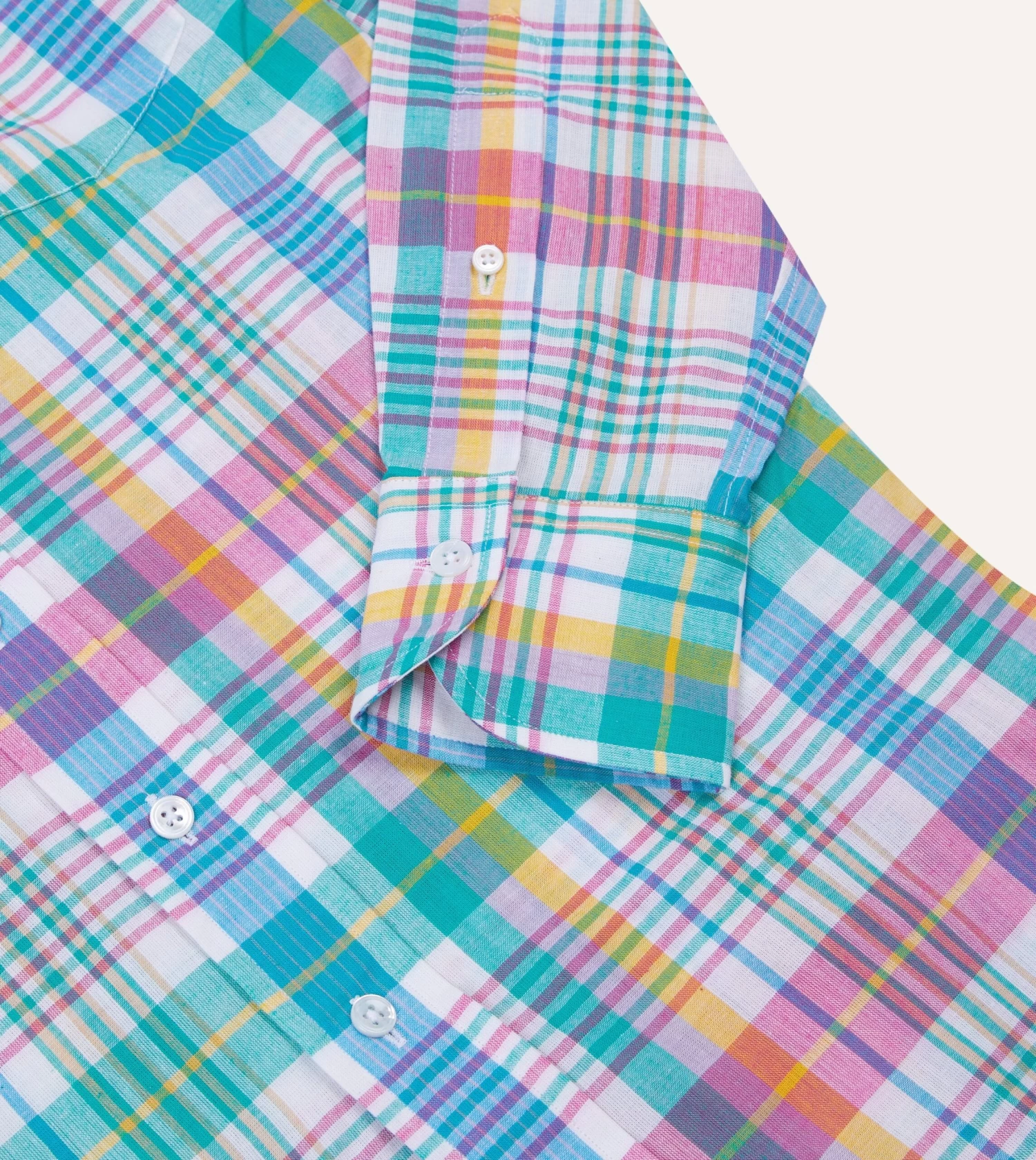 Madras is a certified summer staple; woven in in Chennai, India (formerly named Madras) from a delicate, short-staple cotton fibre that is home-spun by hand, resulting in the slubby unique texture.