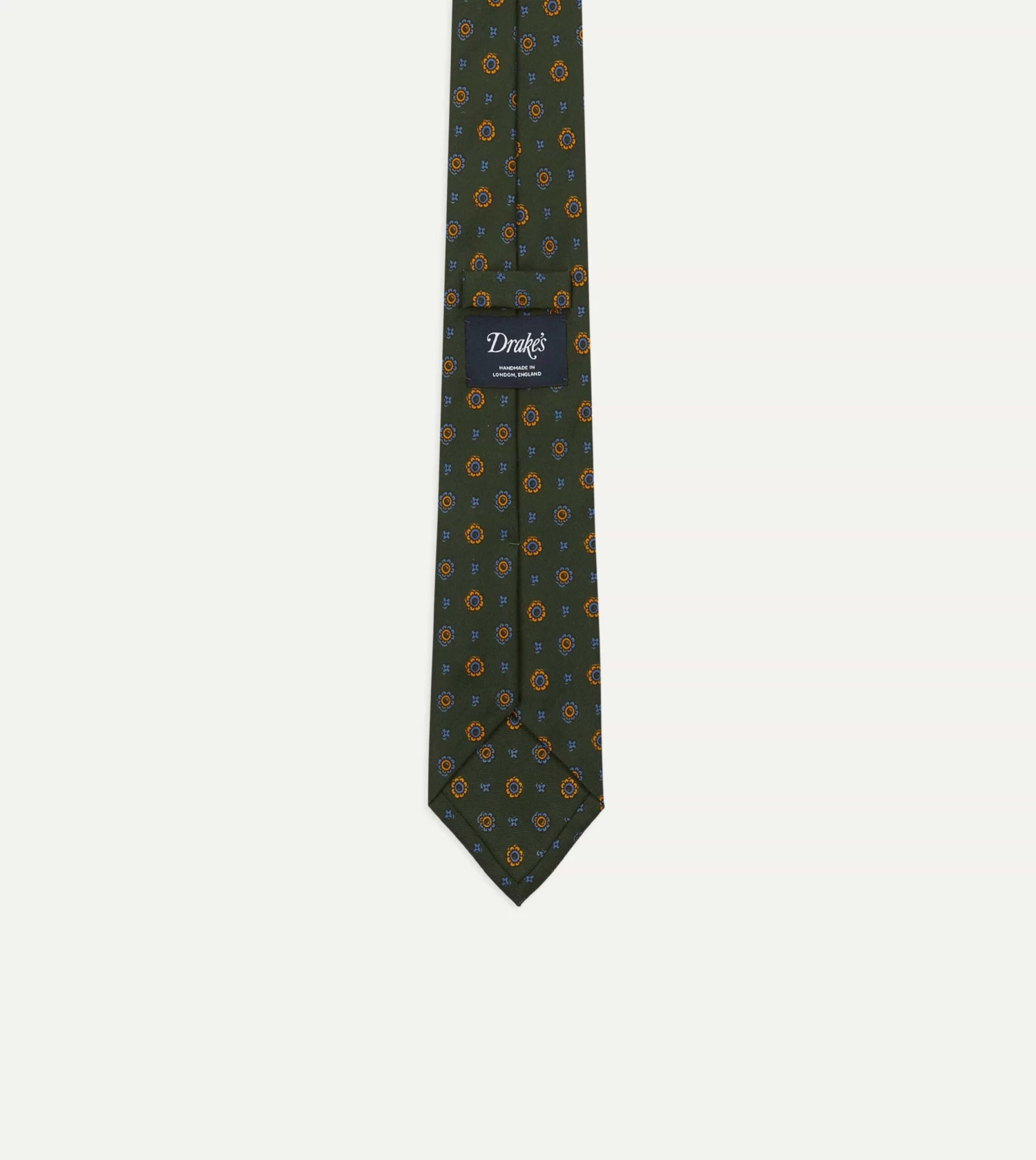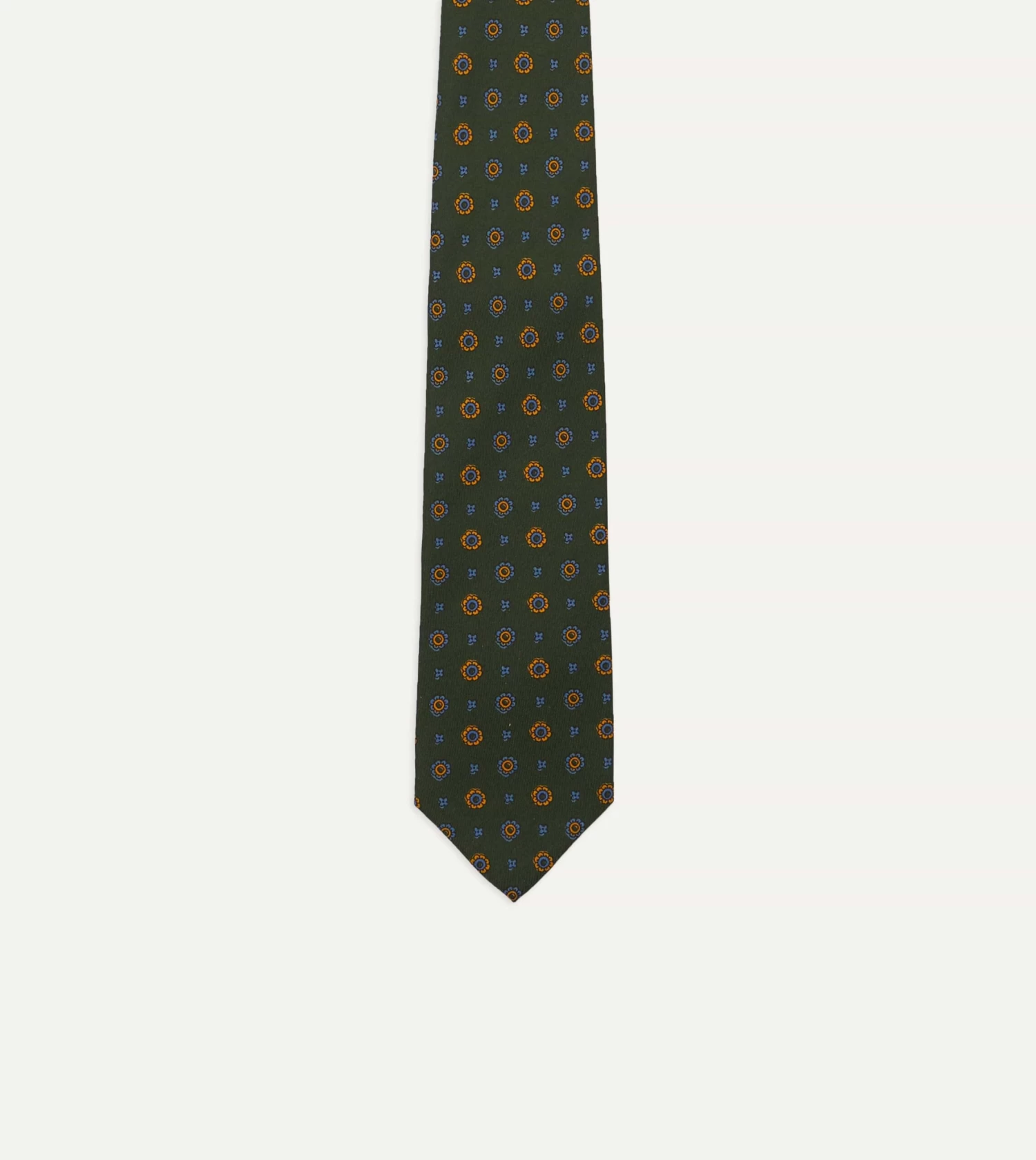 An ornate medallion design simply exudes elegance, particularly when printed on a substantial 36oz silk and hand rolled by our dedicated tiemakers in the heart of east London.