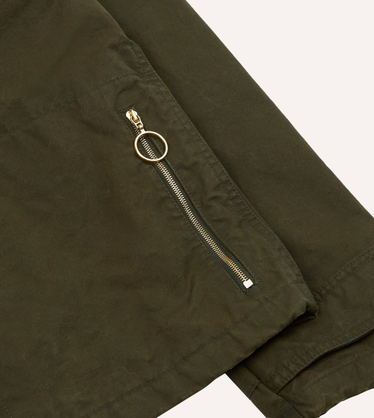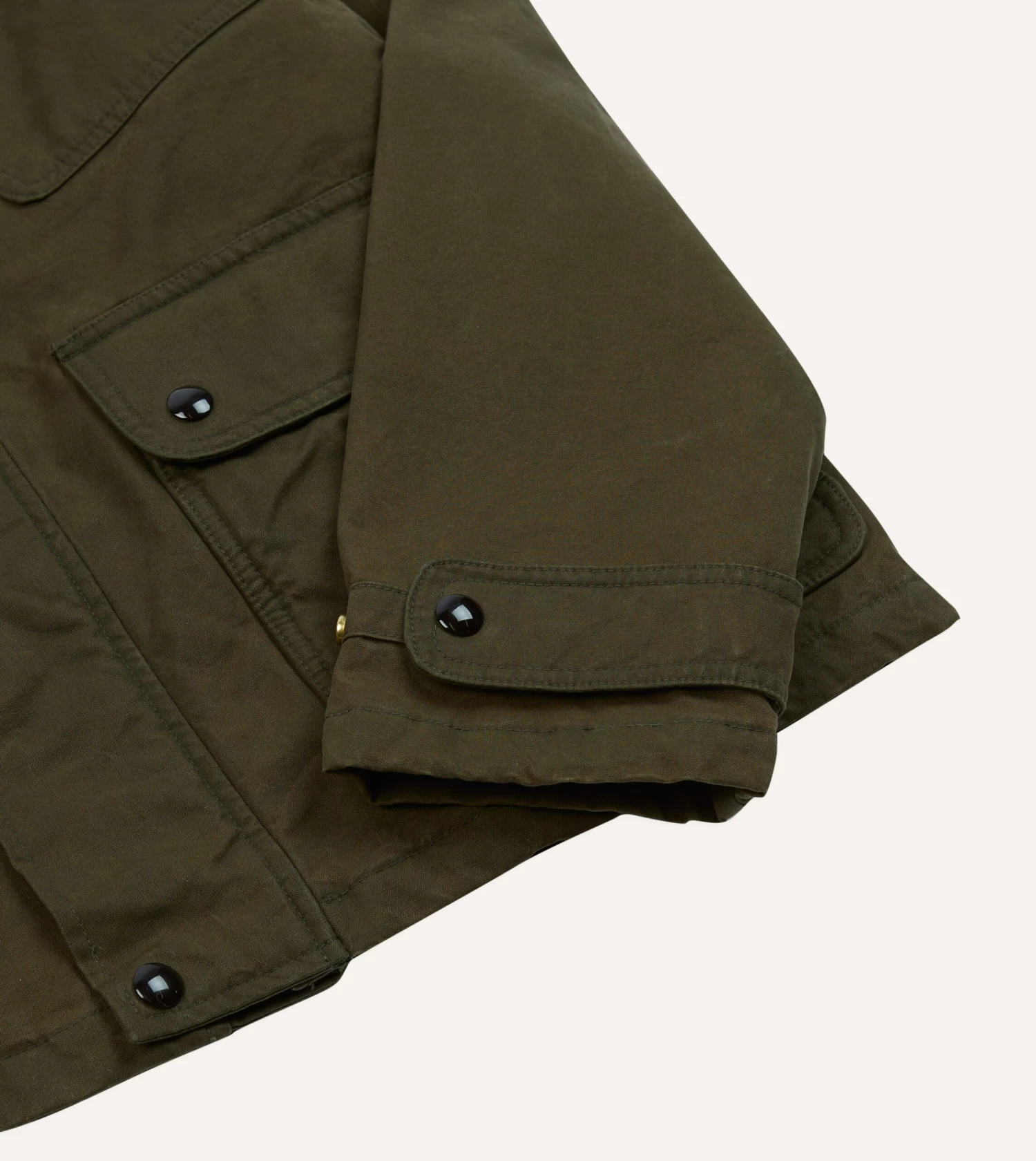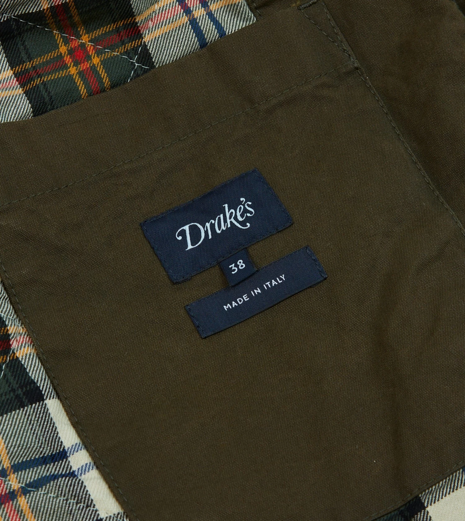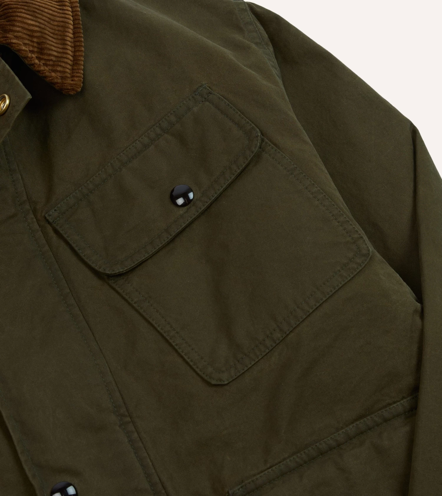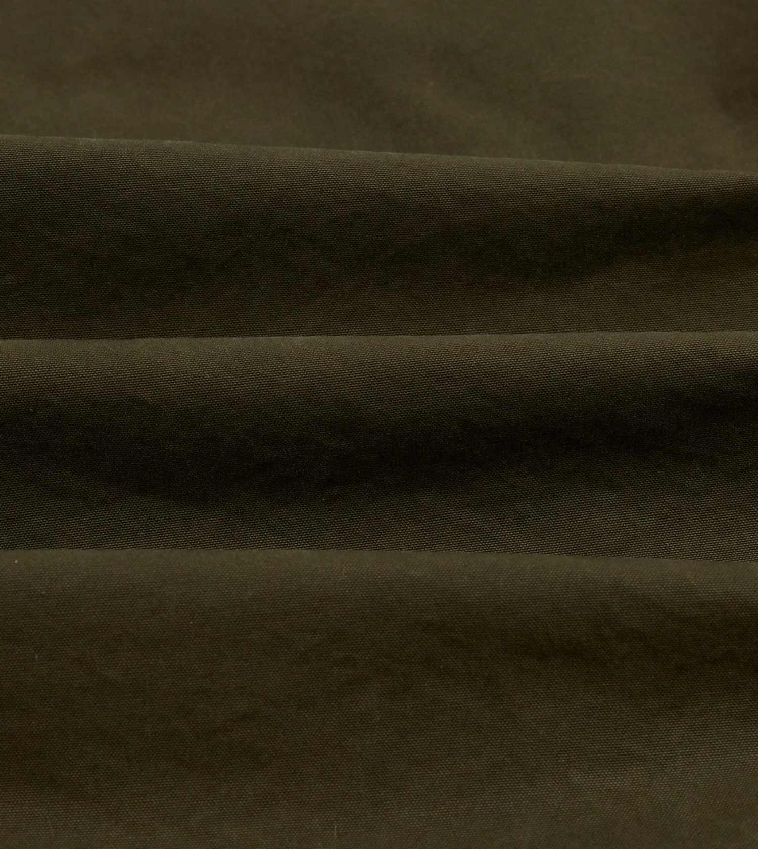 Made in Italy from Scottish waxed cotton, the Wader is cut short and slightly boxy, with a mid-wale corduroy tab collar, welted pockets with snap tabs, a sturdy double zip and rear poacher pocket.