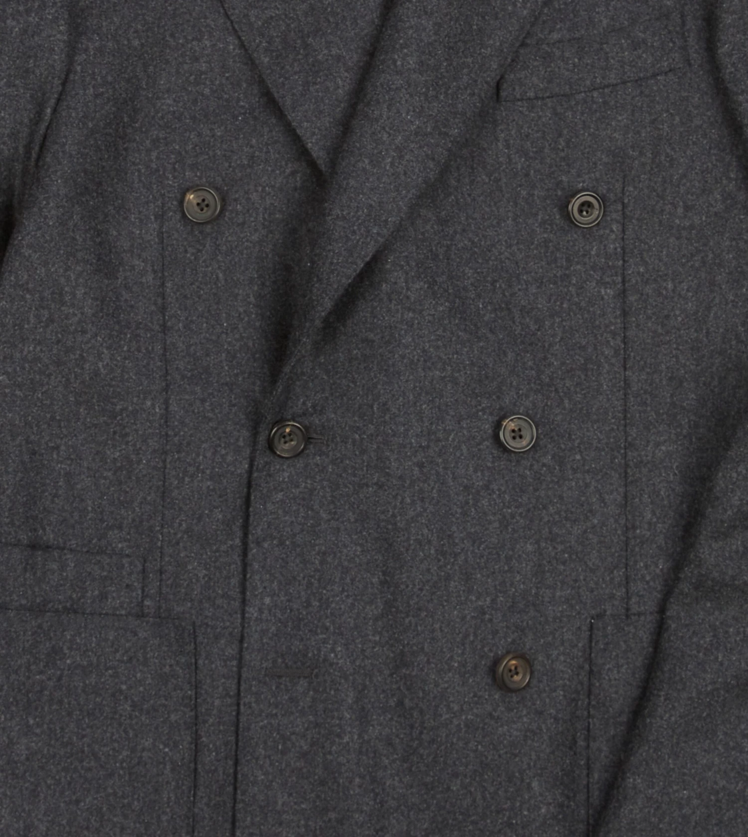 Ours is softly tailored in our house cut from a 10oz mid-weight flannel wool, with a four-value fastening, a slightly bellied lapel, patch hip pockets with our signature patch ticket pocket, and our signature soft shoulder ensuring a highly versatile piece.