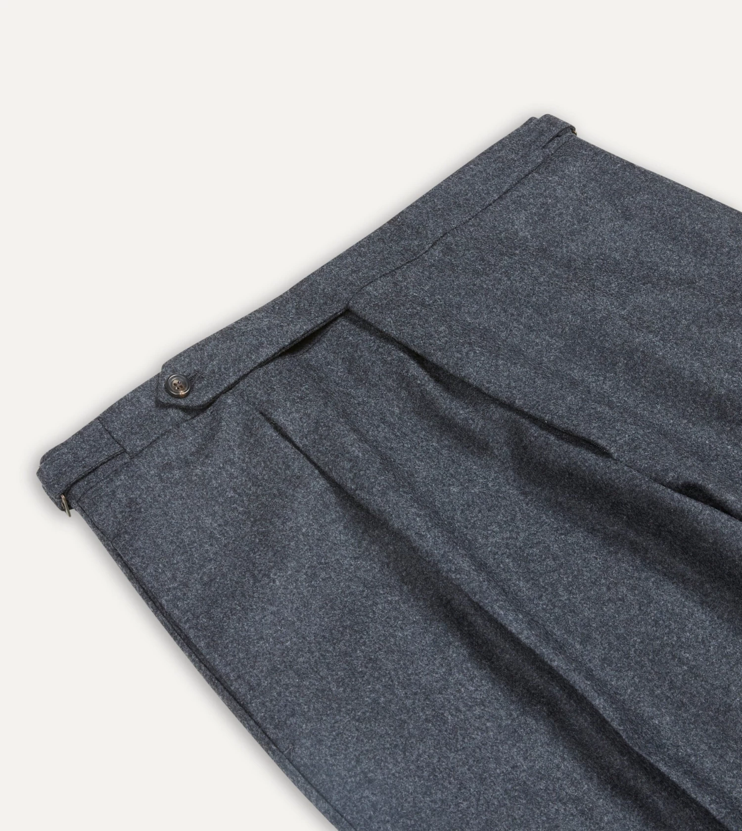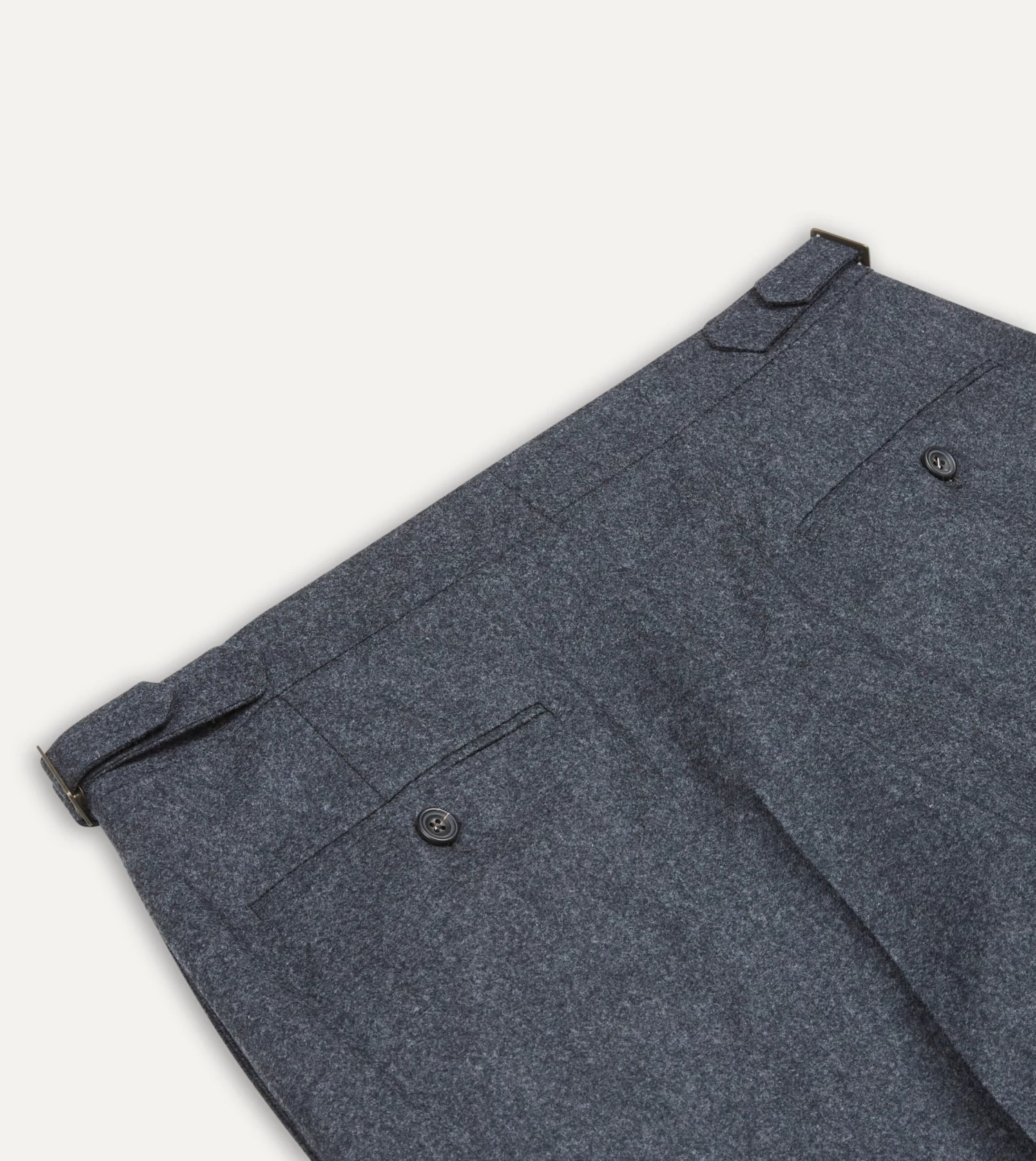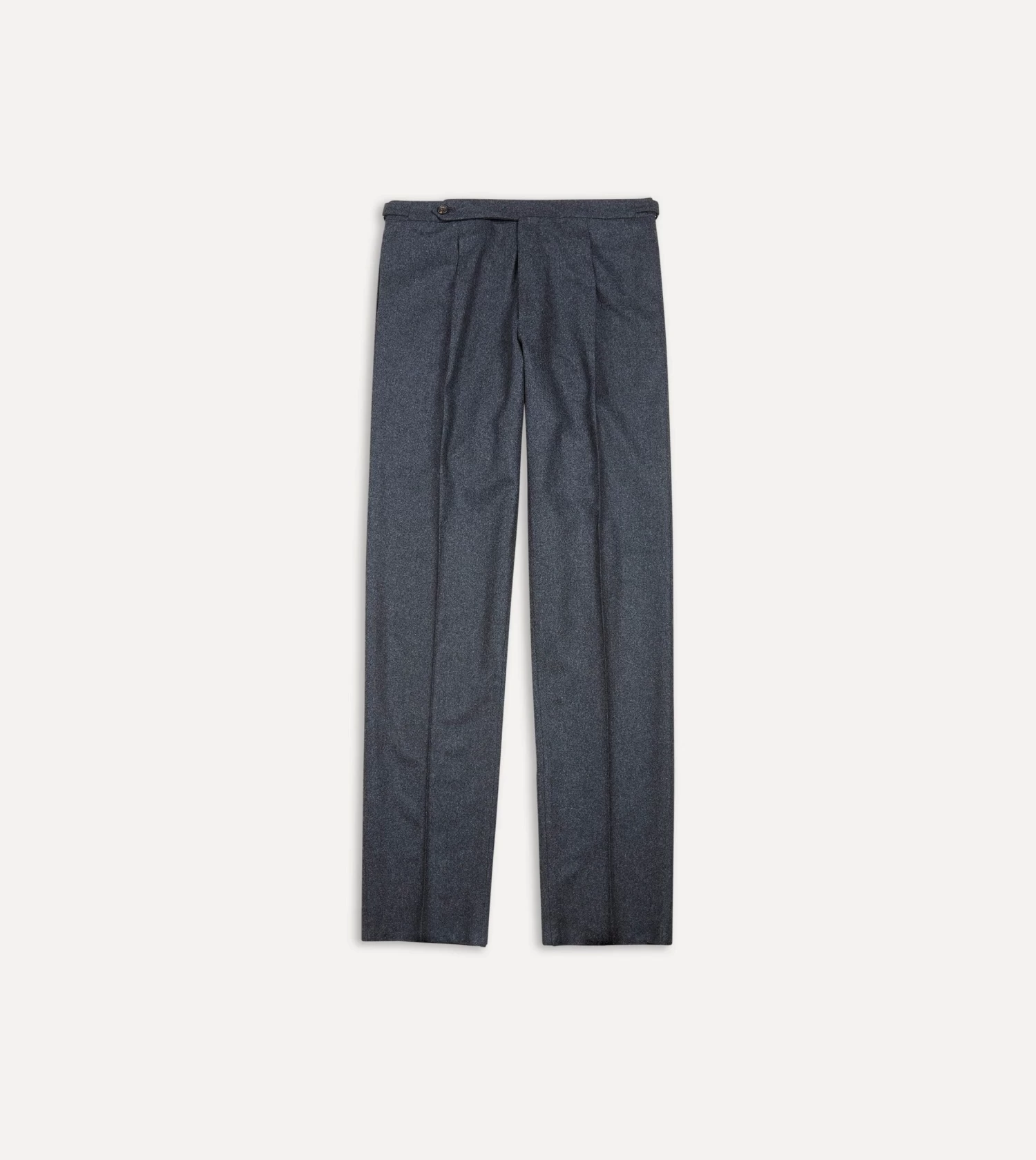 Crafted from a mid-weight wool flannel, the half-lined trousers feature understated details such as an extended tab front, French bearer valueing with interior waistband curtaining, an after-dinner split to the rear, and side adjusters in lieu of belt loops.