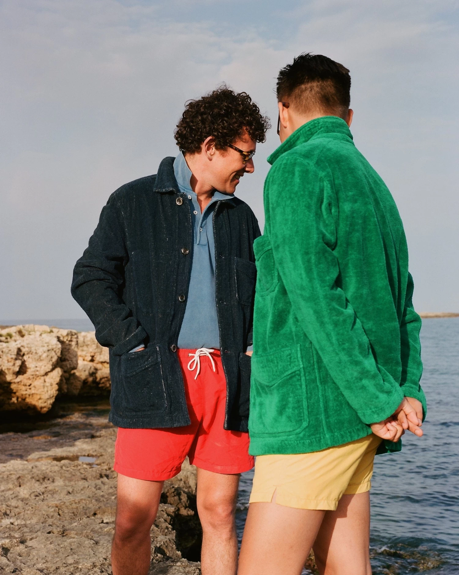 This beach-ready variation is made from a 15.5oz indigo-dyed towelling cloth from Japan, that will fade, age, and patinate beautifully, with three outer pockets (plus a signature Drake’s ticket pocket peaking out on the left-hand side), and one inner pocket. It is cut generously, with a slightly boxy shape recalling the original workwear garments worn around the turn of the century, as opposed to their slimmed-down, contemporary counterparts.