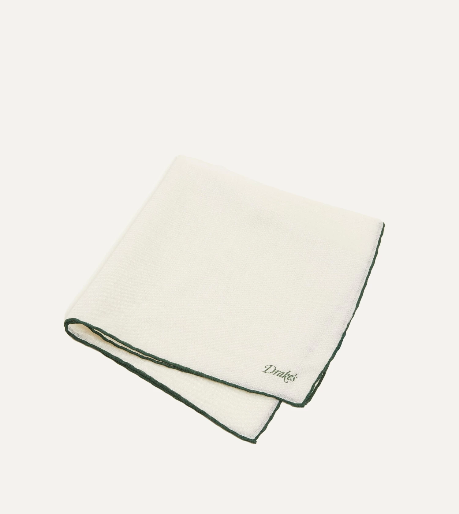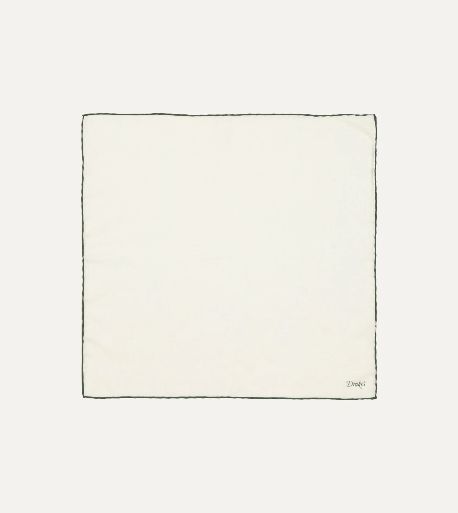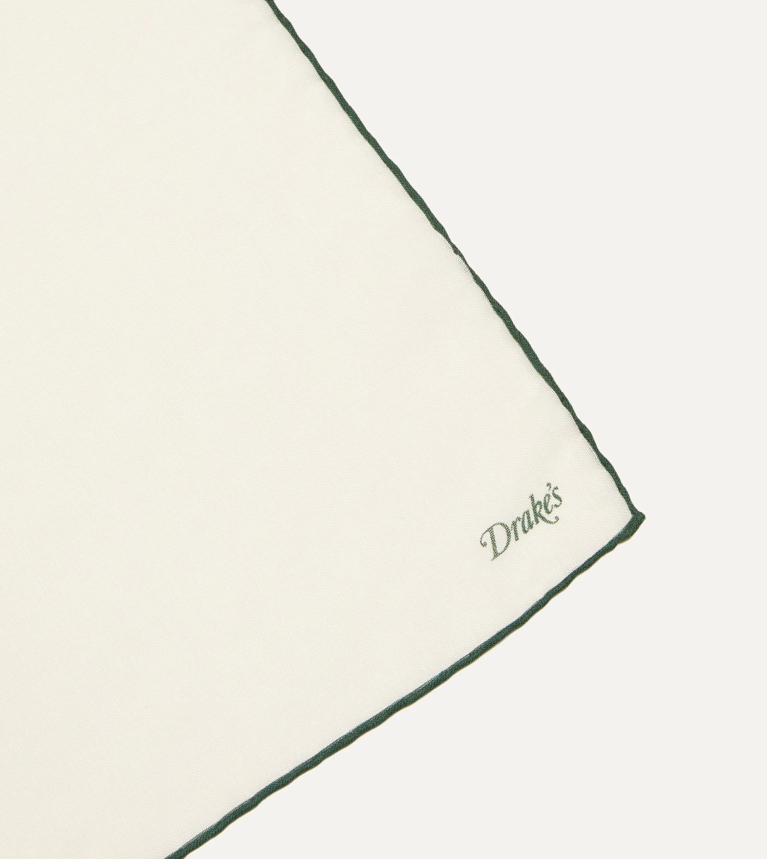 One of our most classic pocket square designs, the handrolled shoestring border creates a dynamic visual contrast however it is folded (or stuffed) in one’s pocket.