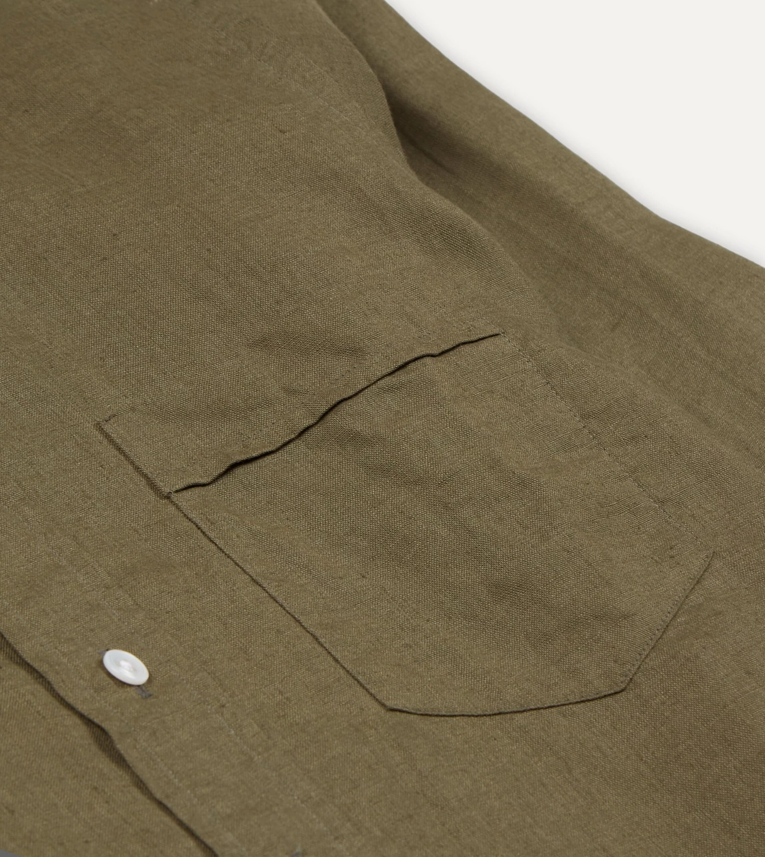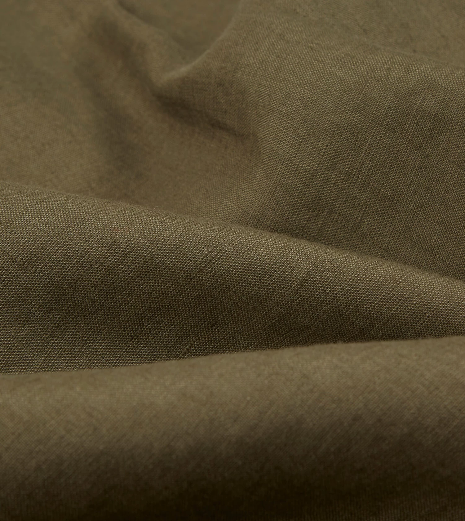 Khaki Green Linen Spread Collar Shirt