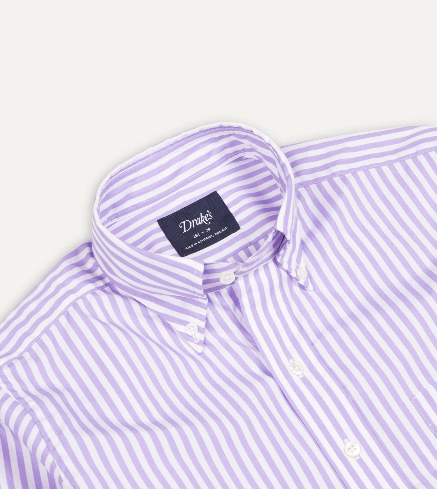 Lilac Bengal Stripe Cotton Poplin Button-Down Shirt