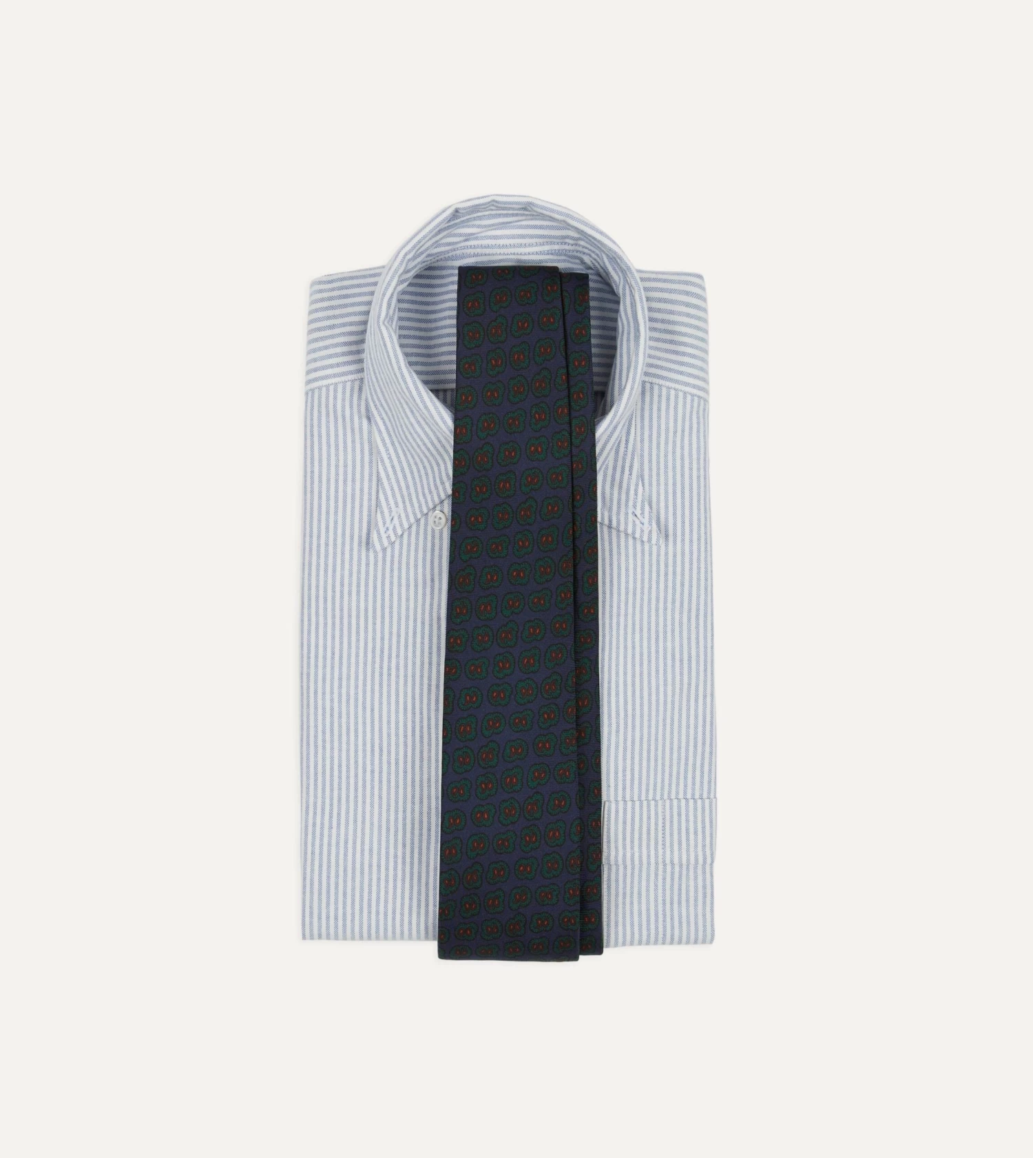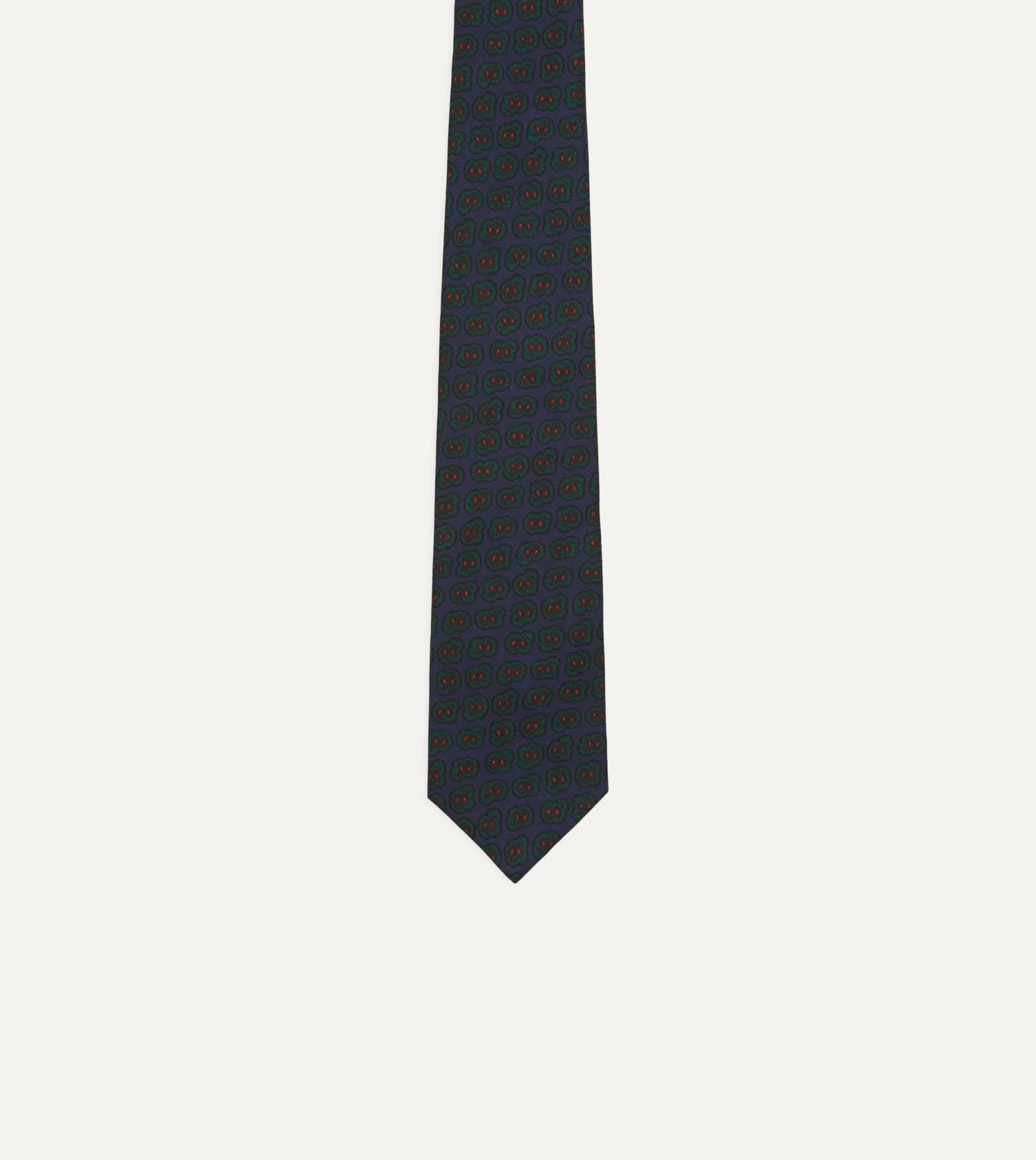 Navy And Green Paisley Double Leaf Print Silk Tipped Tie
