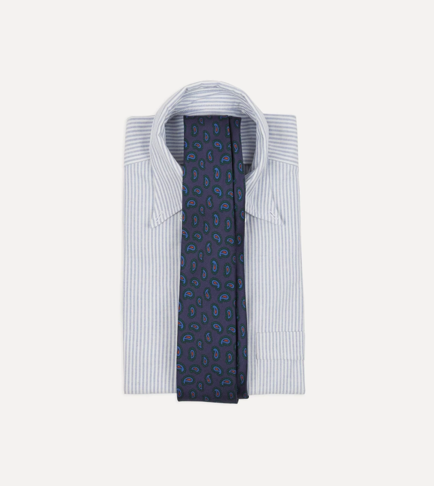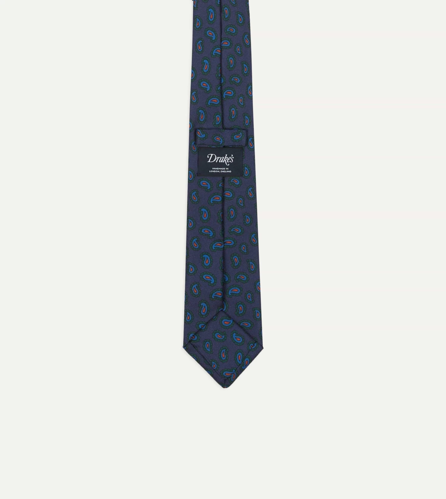 This design, printed in Macclesfield on pure silk, features a classic paisley, and is reminiscent of the elegant late 1960s neckwear favoured by rockstars and royalty alike. Made by hand in London.