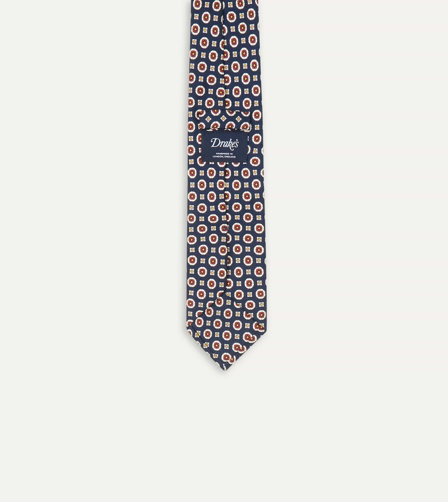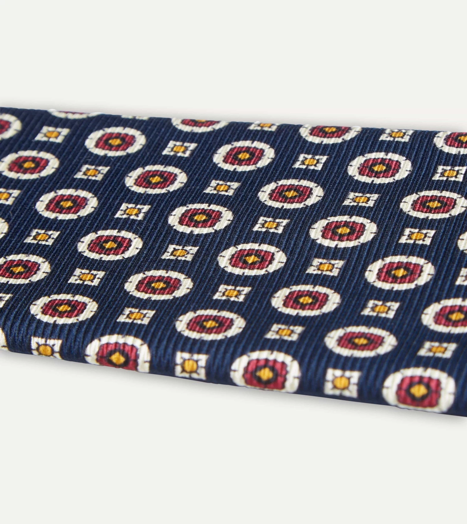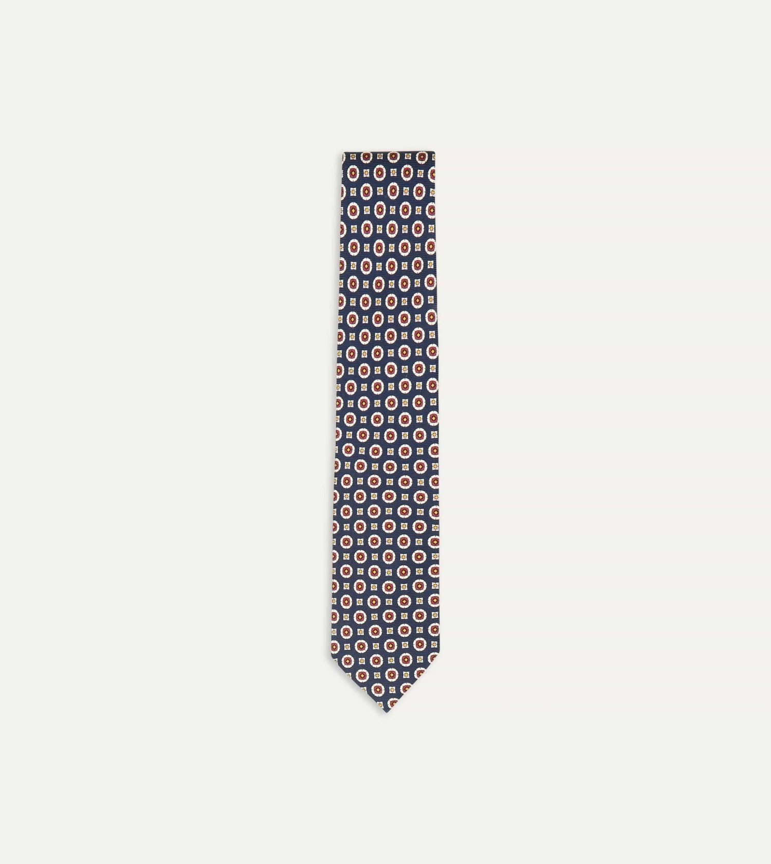 An ornate medallion design simply exudes elegance, particularly when printed on pure silk and hand rolled by our dedicated tiemakers in the heart of east London.