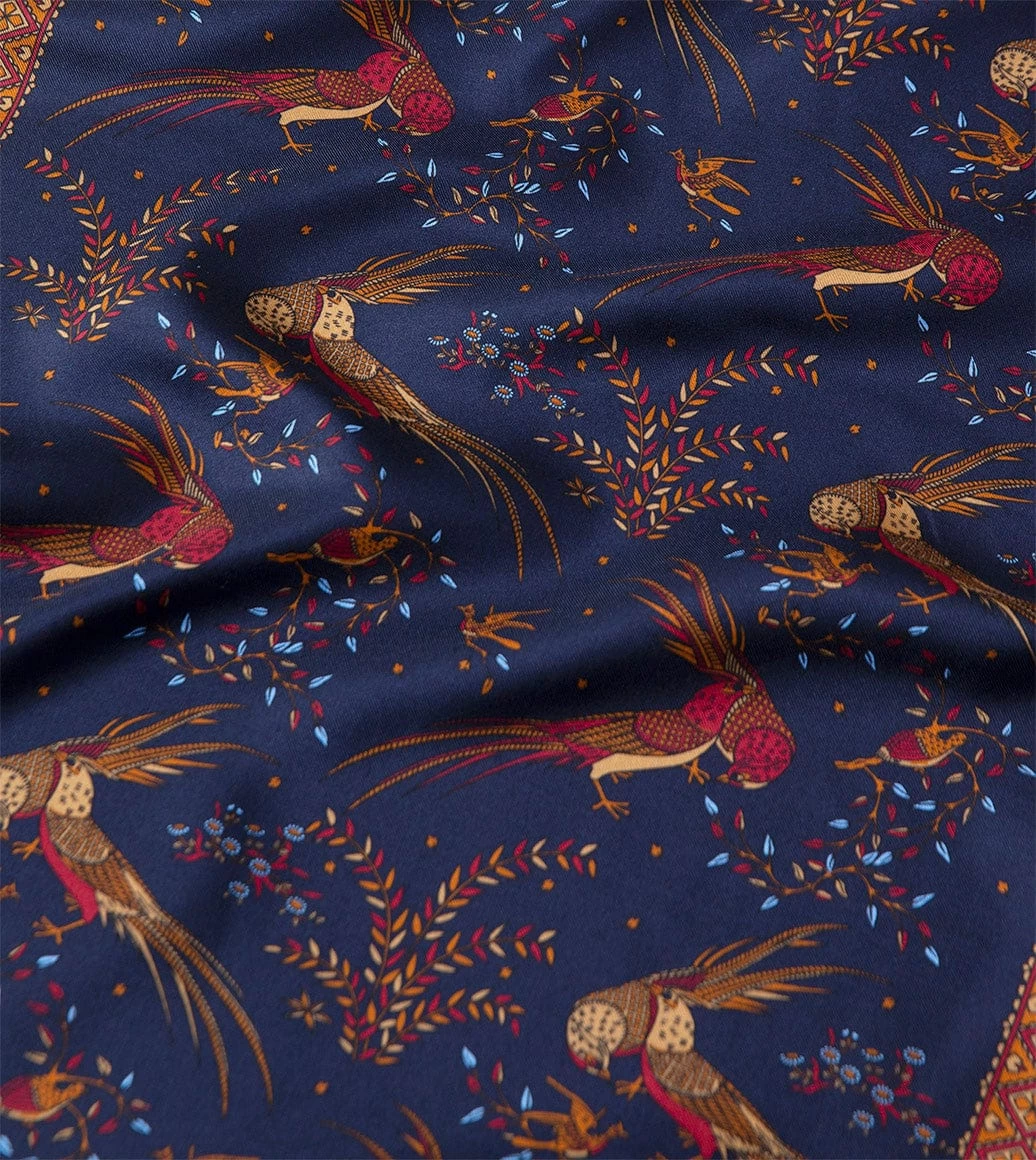 This scarf features an archival Drake’s design, made and printed on pure silk by experts in Como, Italy.