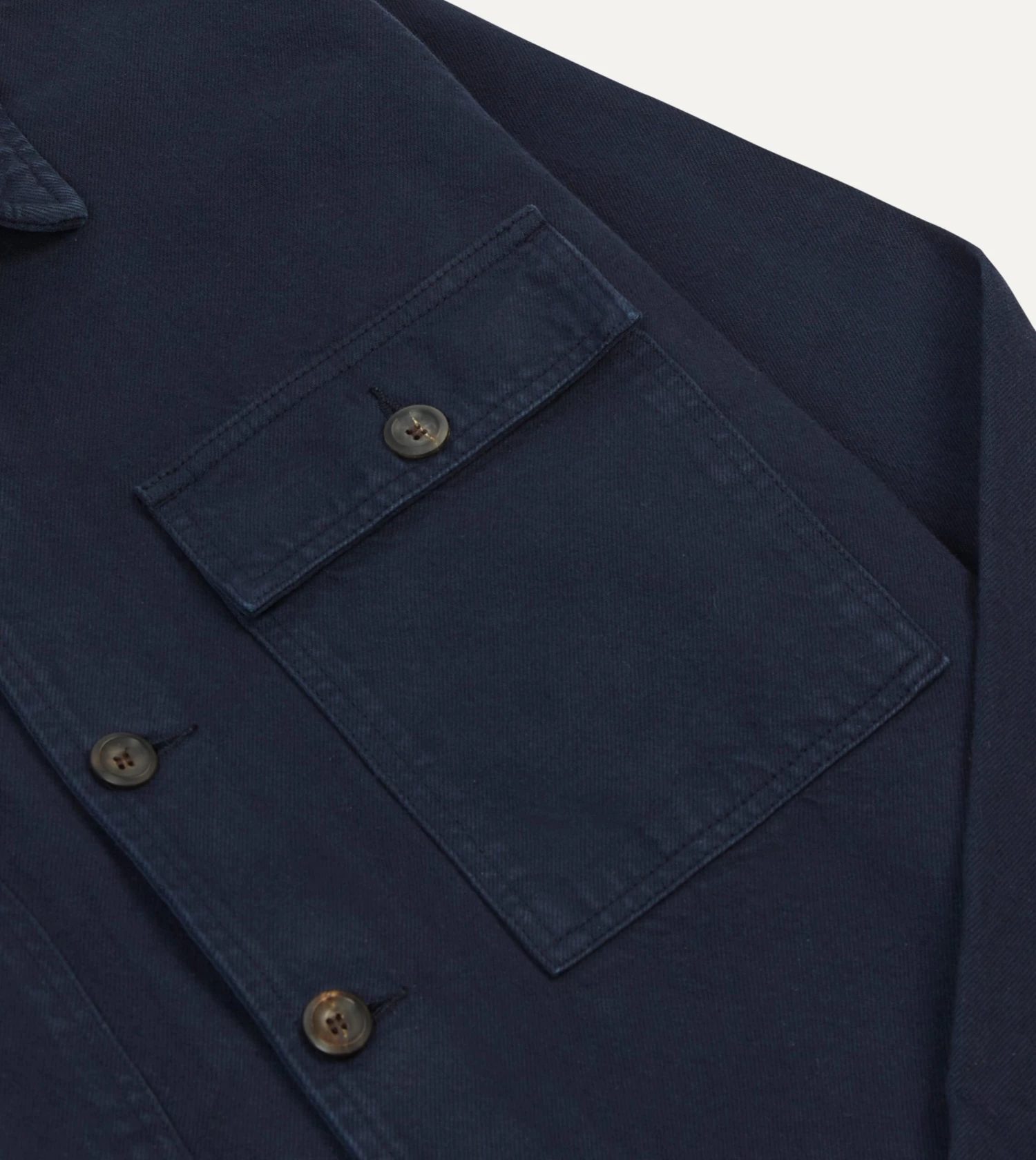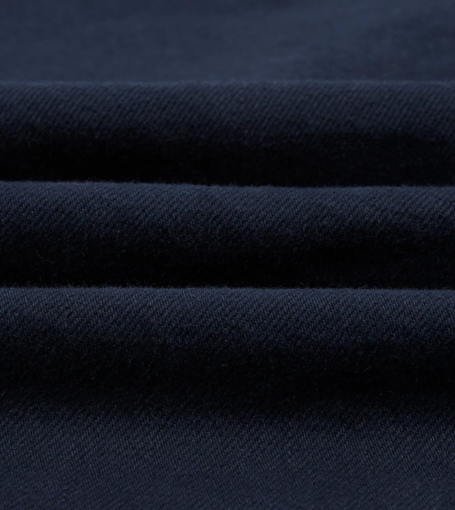 This version, inspired by 20th century British uniforms, features twin value patch pockets on the breast, reinforced cuffs and a square hem, bringing to the fore the utilitarian nature of this cut, while a hardy composition of Italian cotton makes for an unparalleled drape and handle, bringing a sense of playful elegance to this homage to military shirting.