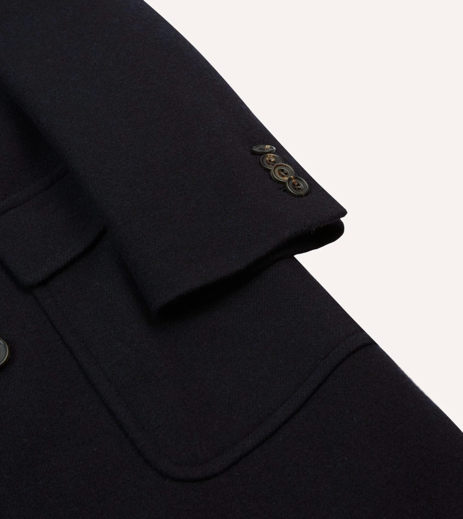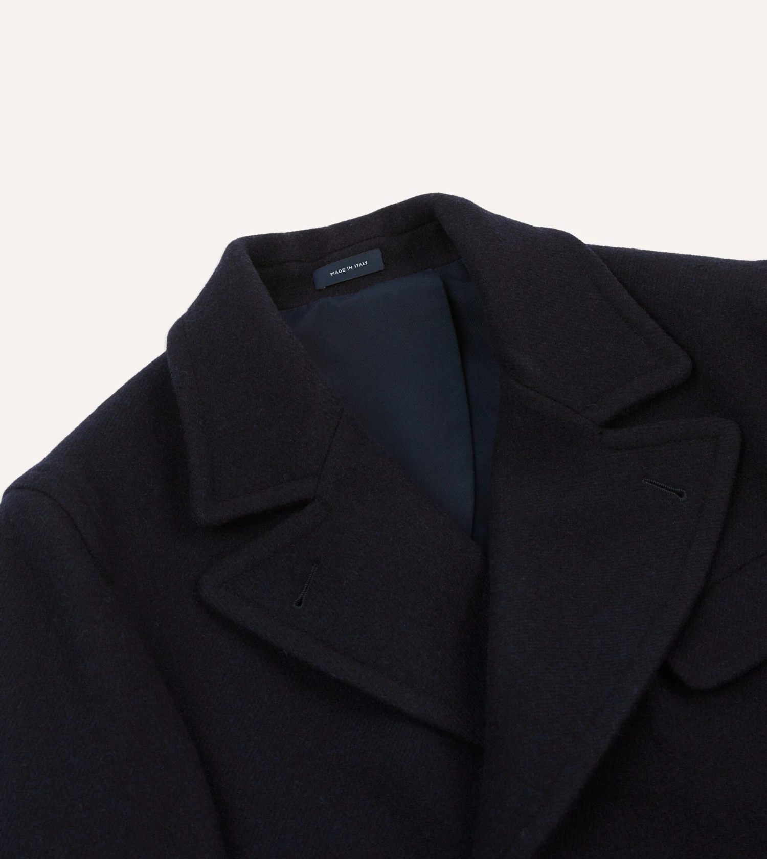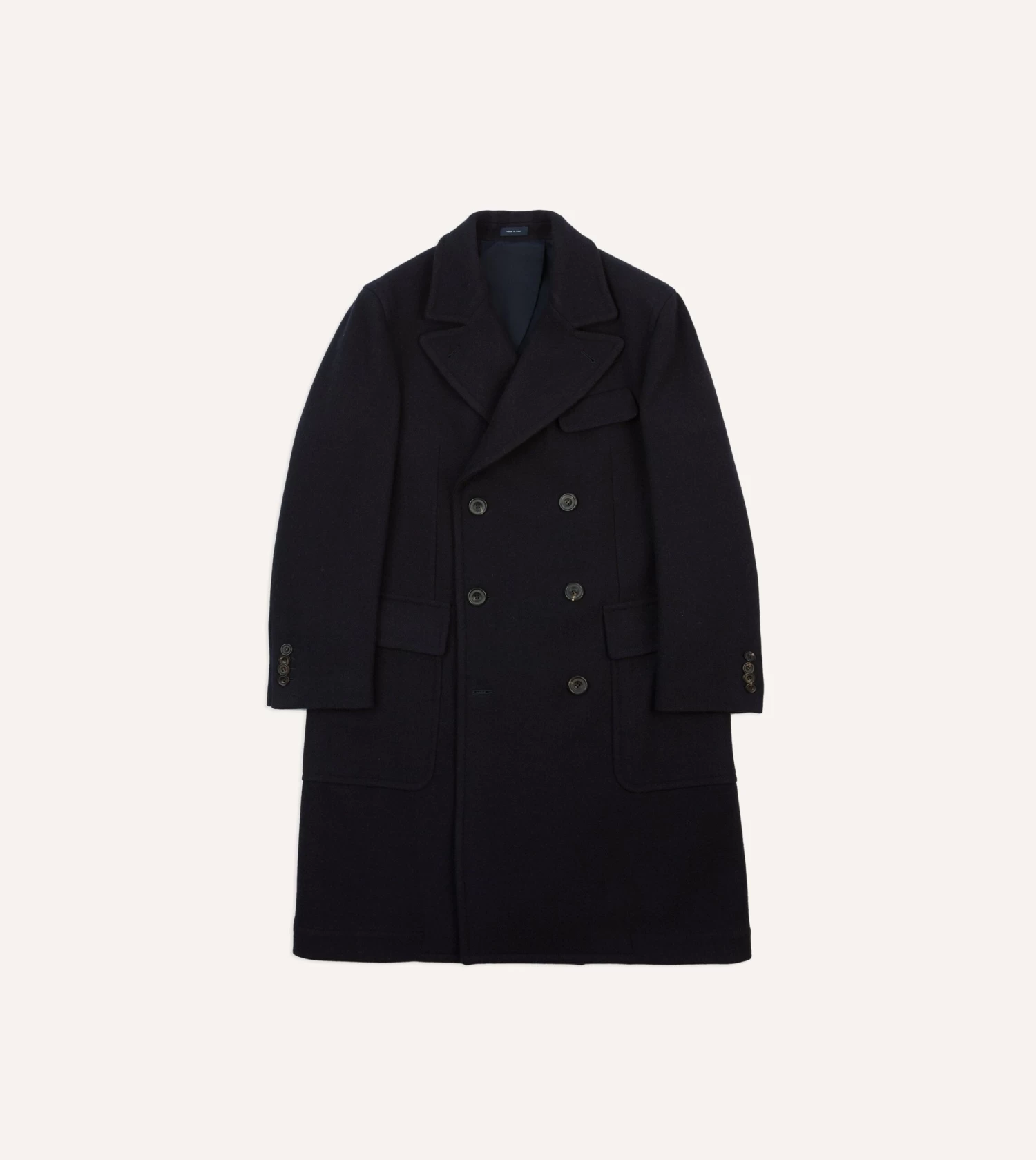 Constructed from a remarkably substantial 14.7oz lambswool cloth from Fox Brothers & Co., the coat has two accommodating outer patch pockets, a flap chest pocket, as well as two internal pockets for valuables. It closes with six weighty horn values, and a serviceable ulster collar. Whether worn over formal tailoring or rugged casualwear, this coat is irreproachable in its quality and timeless style.
