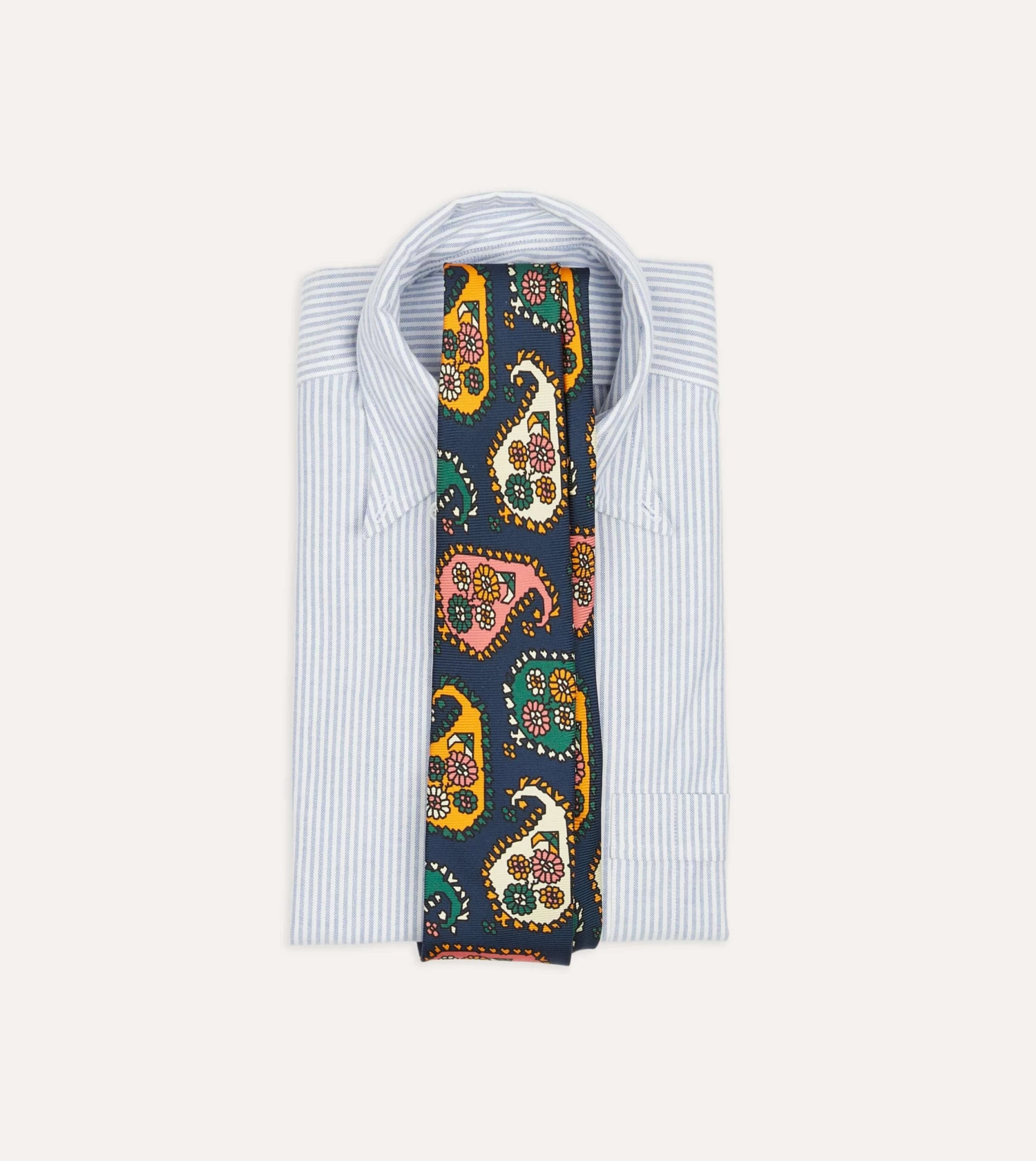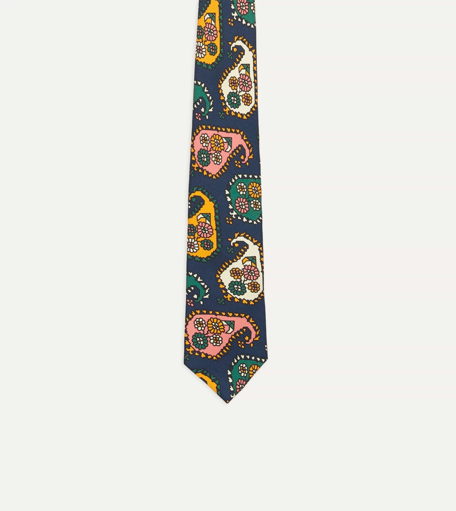 Navy Geometric Paisley Print Twill Silk Tipped Tie